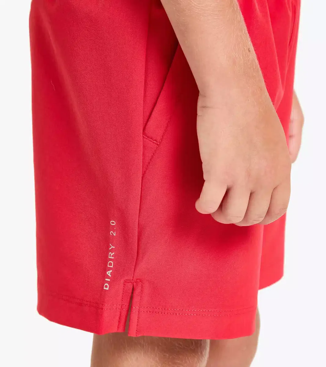 Short en microfibre élastique légère, avec ceinture élastique interne en maille et poches internes en maille.