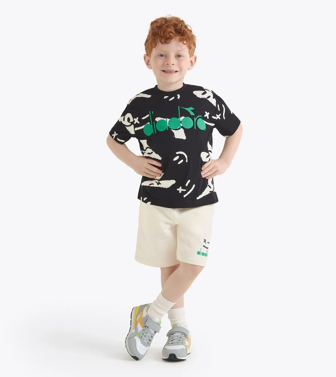 Rendez les loisirs de vos enfants confortables et amusants. Cette tenue sportive se compose d’un t-shirt ironique avec un motif sourire et d’un short assorti qui reprend la couleur des logos contrastés du t-shirt. Un ensemble de sport pour garçon prêt à l’emploi.