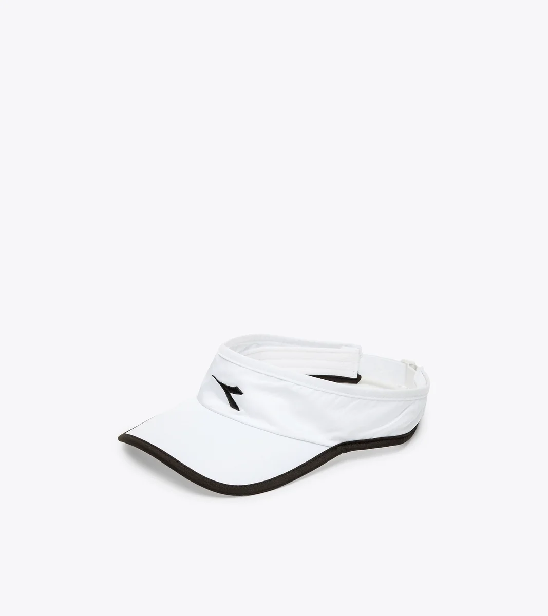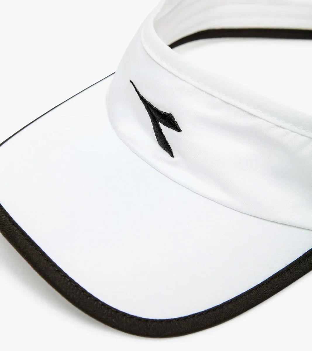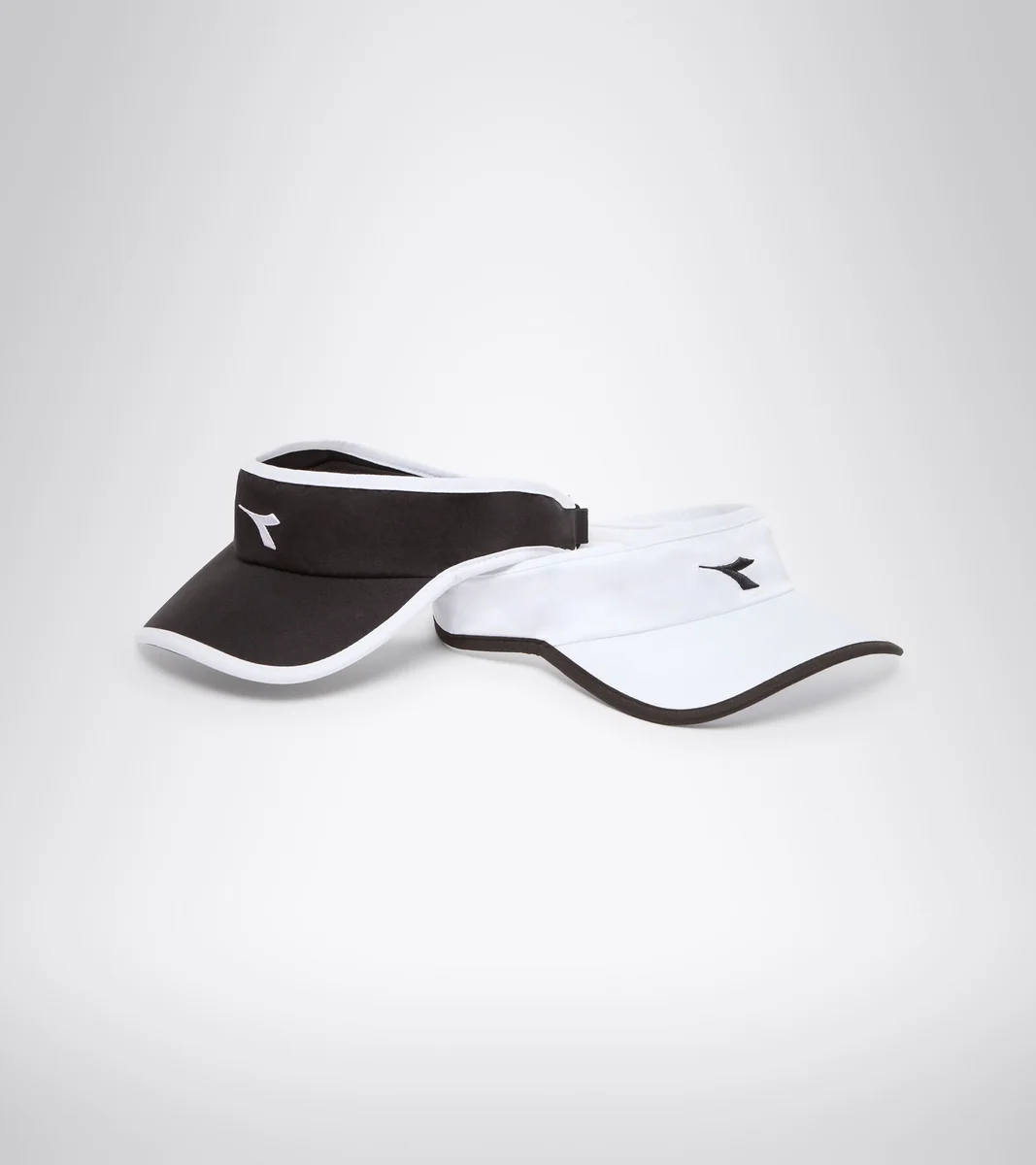 Visière de tennis unisexe en microfibre légère avec bordure contrastée, bande frontale anti-transpiration et largeur réglable.