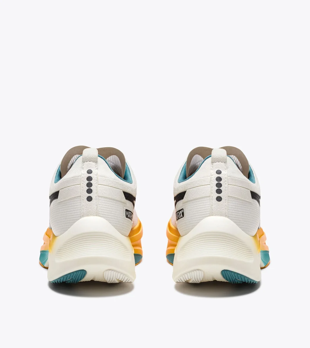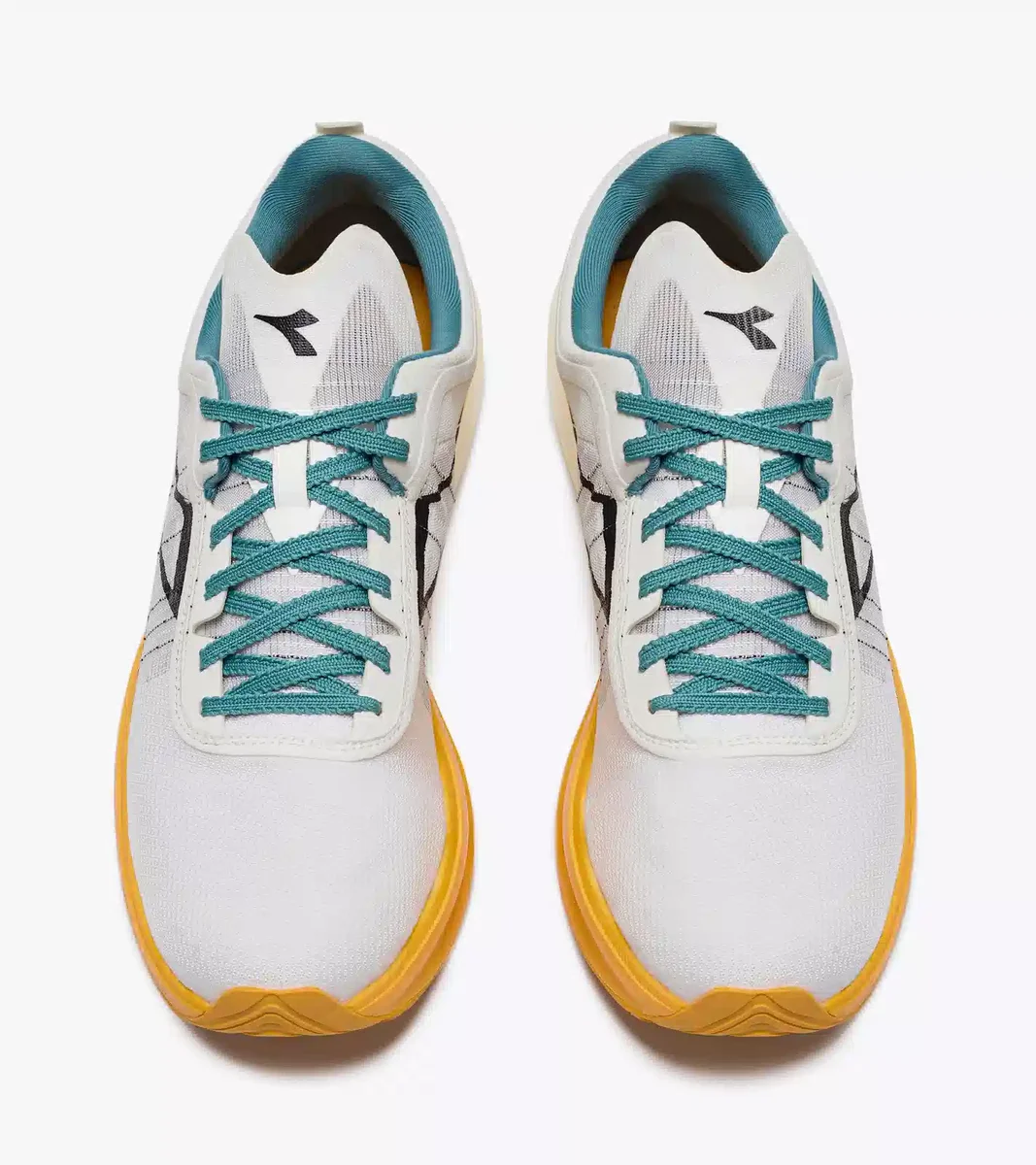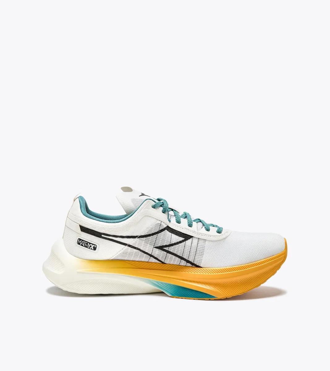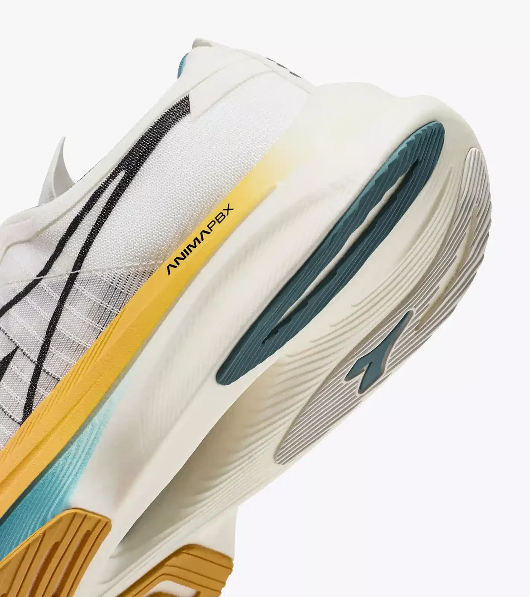 Amorti, réactivité et légèreté. Anima PBX est la nouvelle technologie Diadora en PEBAX SCF (Super Critical Foaming) qui augmente le rebond de la semelle intermédiaire de 55 %, tout en réduisant son poids de 40 %. Rebond extrême. Les tests en laboratoire montrent un rebond total de 80 %. Tige Mesh Matrix. Tige Mesh Matrix avec fibres de carbone pour alléger la chaussure.