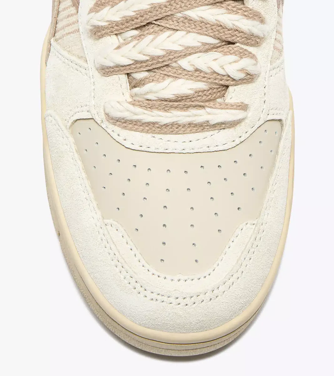 B.560 Boho : élégante et raffinée, cette basket présente une tige en cuir perforé sur la pointe, finement tissée avec des détails en tissu sur le quartier et le talon. Un léger cirage donne à la chaussure un aspect usé et authentique, fidèle au style Heritage.