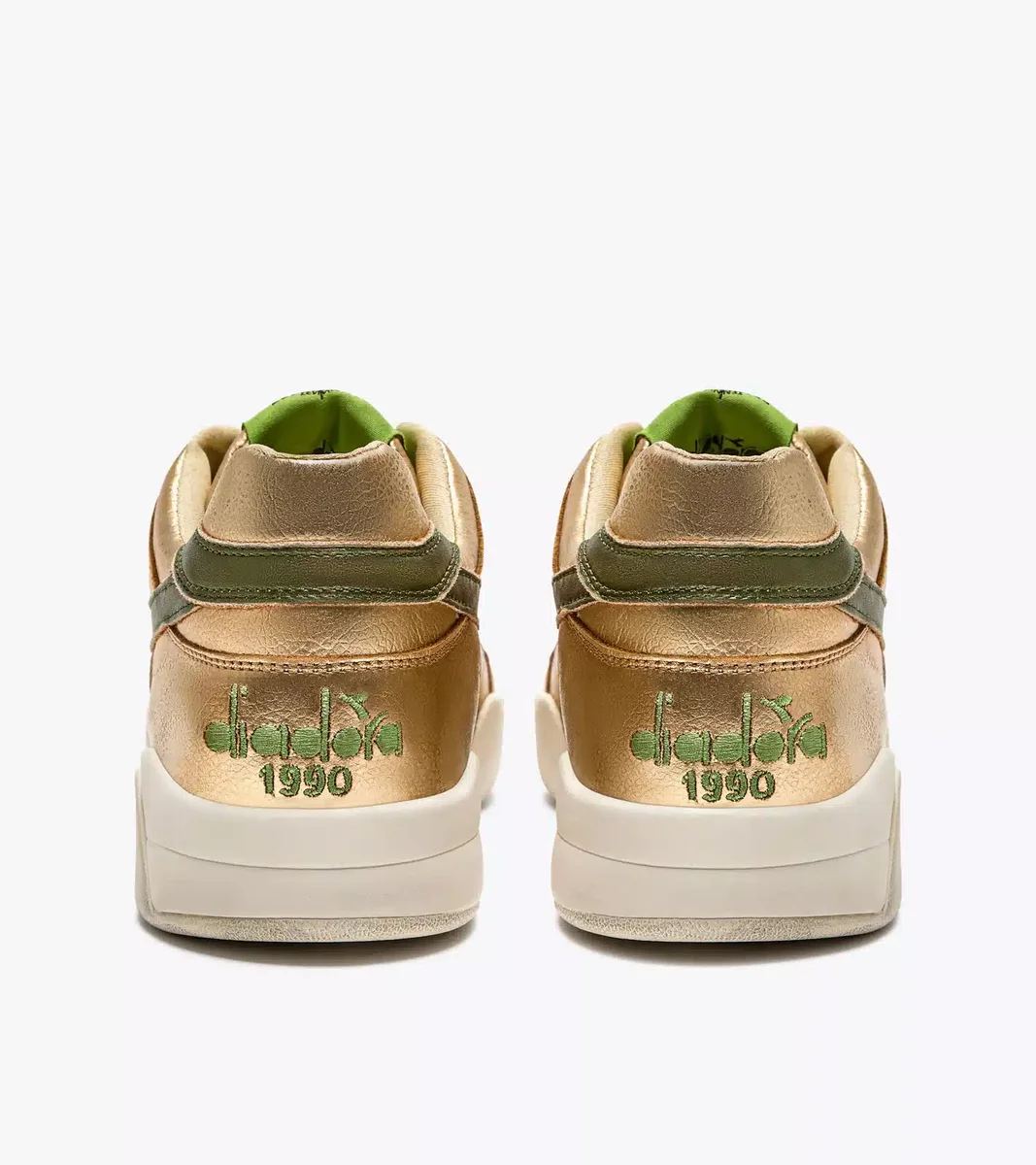 Finition typique des sneakers Diadora Heritage, la cire rehausse la couleur naturelle du cuir et le protège, le rendant plus résistant à l’eau. Le processus de cirage Diadora laisse des imperfections qui rendent chaque paire de sneakers unique