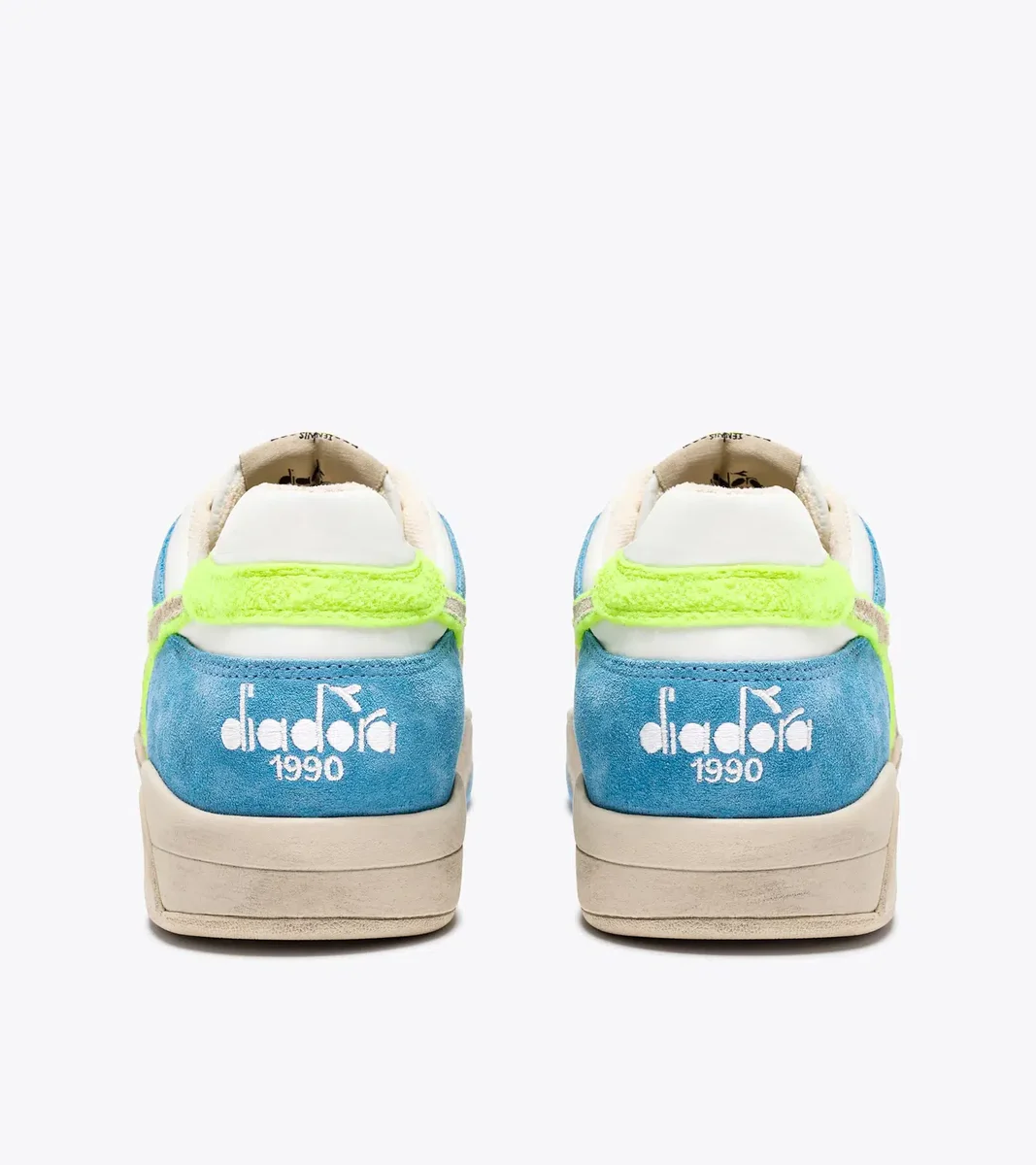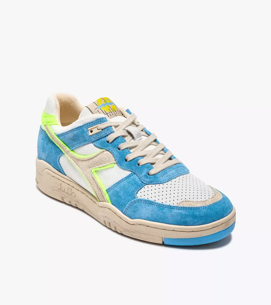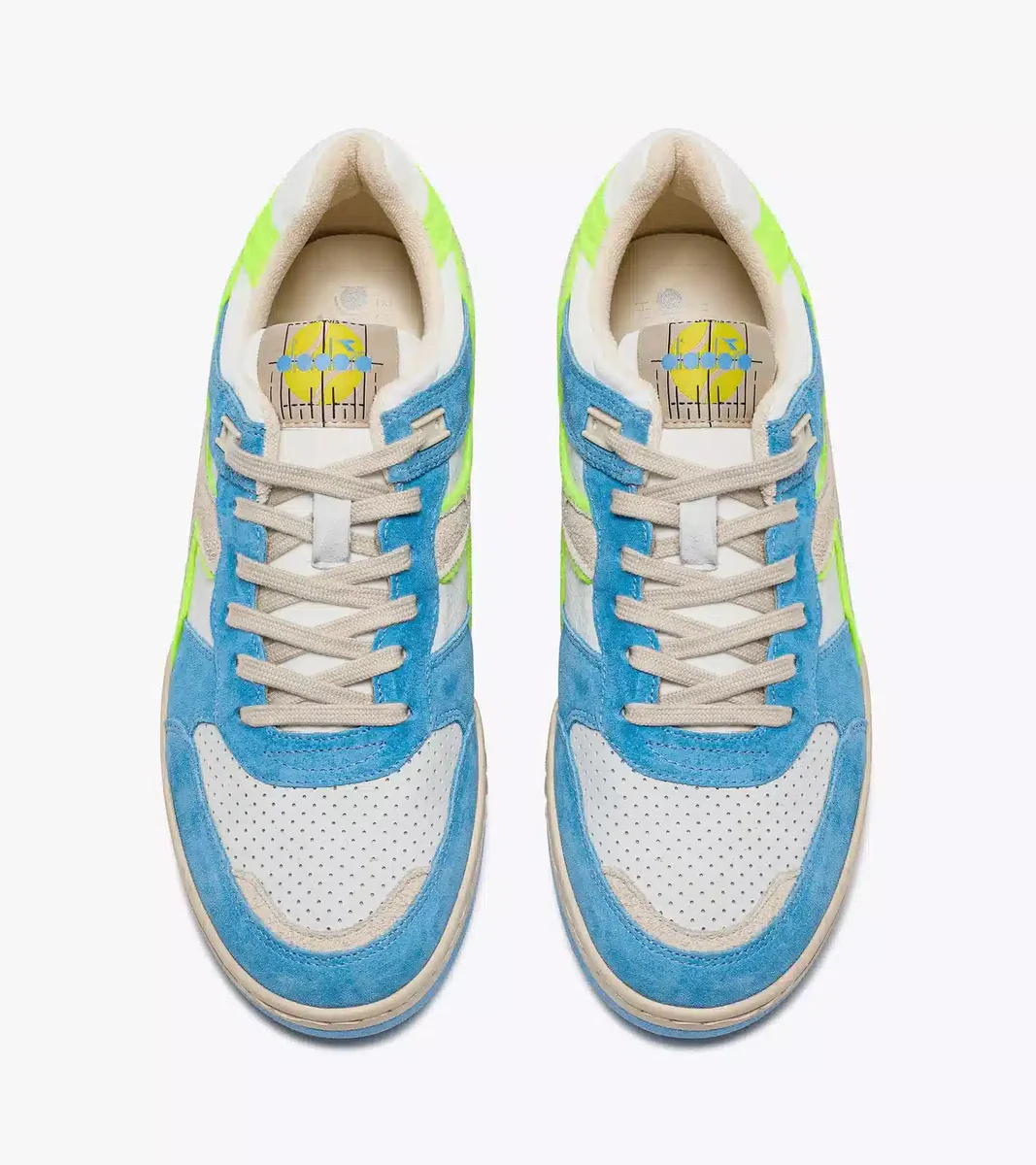 Une édition exclusive B.560 Made in Italy qui rend hommage aux couleurs de l’Open d’Australie, avec du cuir de porc et du daim. L’empeigne est en cuir perforé, rehaussée de touches de couleur lime sur la languette du talon et soulignant le logo Diadora. La B.560 Used AA Italia bénéficie d’une finition cirée douce pour obtenir son effet vieilli caractéristique.