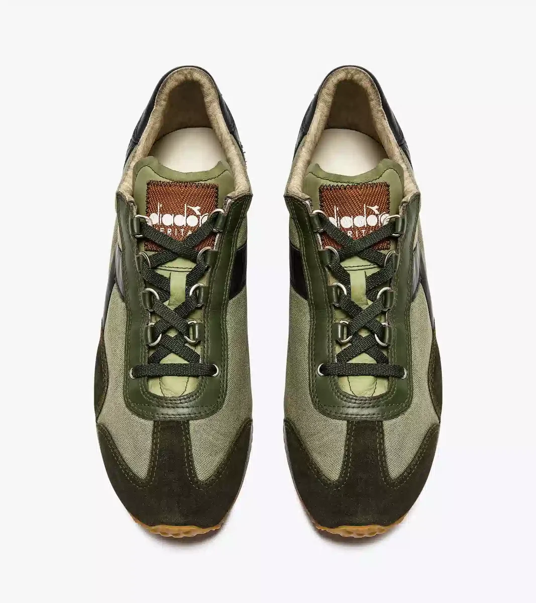Cette basket Heritage se réinvente une fois de plus. La Equipe H Dirty Stone Wash EVO est composée d’un mélange de toile et de daim avec une languette en cuir, et présente une finition stone wash distinctive. Son aspect vieilli ajoute à son charme intemporel, rappelant le charme nostalgique des années 80. Archives 1975 Modèle de course à pied style années 70, tout droit sorti des archives Diadora 1975. Les détails emblématiques, tels que les œillets métalliques, sont fidèles à la toute première chaussure de sport Diadora. Matériaux de qualité supérieure. Fabriquée en toile et en daim, avec une languette en cuir. Stone wash. Détail typique des sneakers Diadora Heritage, le traitement stonewash adoucit le cuir. Effet sale.