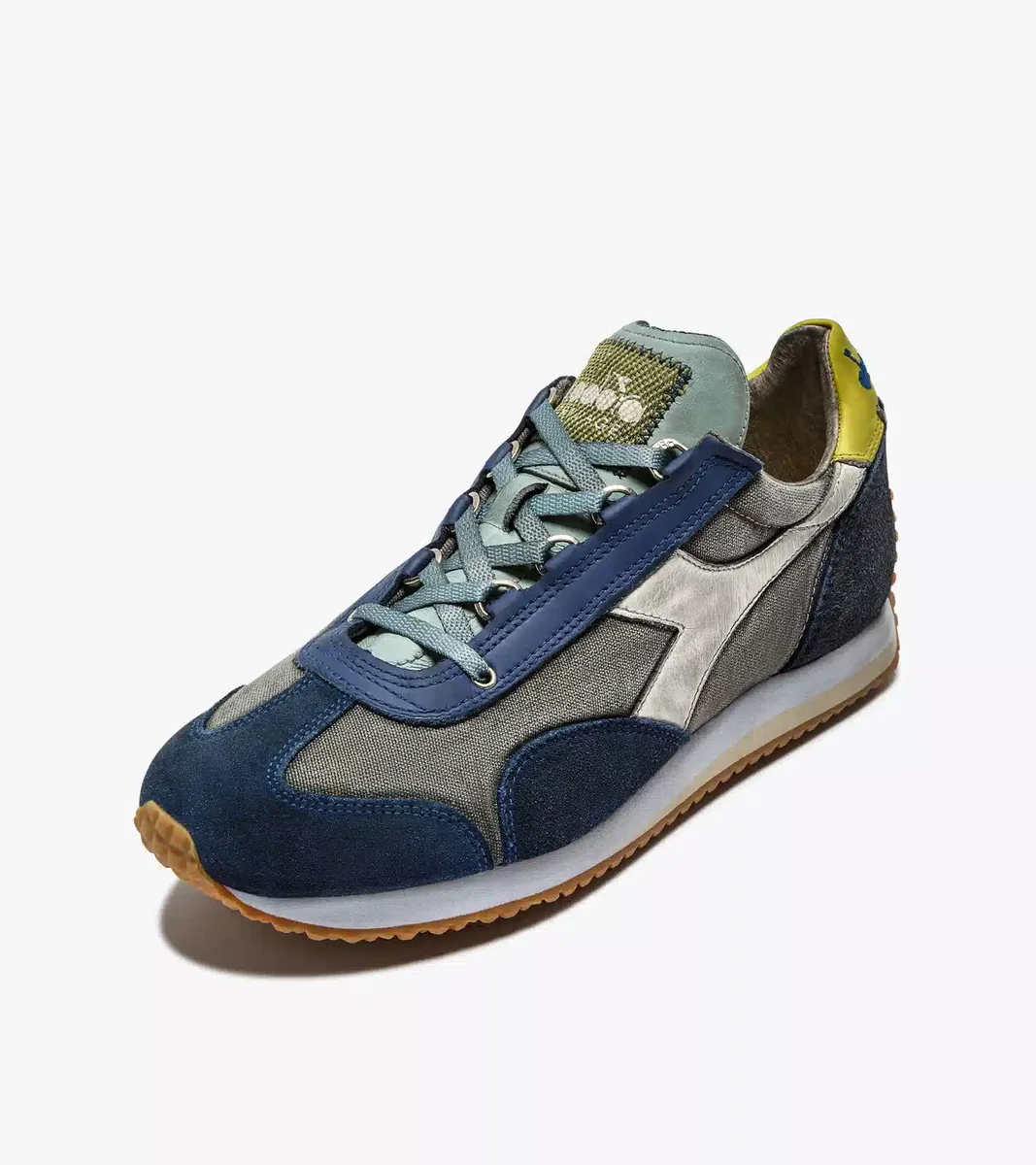 Cette basket Heritage se réinvente une fois de plus. La Equipe H Dirty Stone Wash EVO est composée d’un mélange de toile et de daim avec une languette en cuir, et présente une finition stone wash distinctive. Son aspect vieilli ajoute à son charme intemporel, rappelant le charme nostalgique des années 80. Archives 1975 Modèle de course à pied style années 70, tout droit sorti des archives Diadora 1975. Les détails emblématiques, tels que les œillets métalliques, sont fidèles à la toute première chaussure de sport Diadora. Matériaux de qualité supérieure. Fabriquée en toile et en daim, avec une languette en cuir. Stone wash. Détail typique des sneakers Diadora Heritage, le traitement stonewash adoucit le cuir. Effet sale.