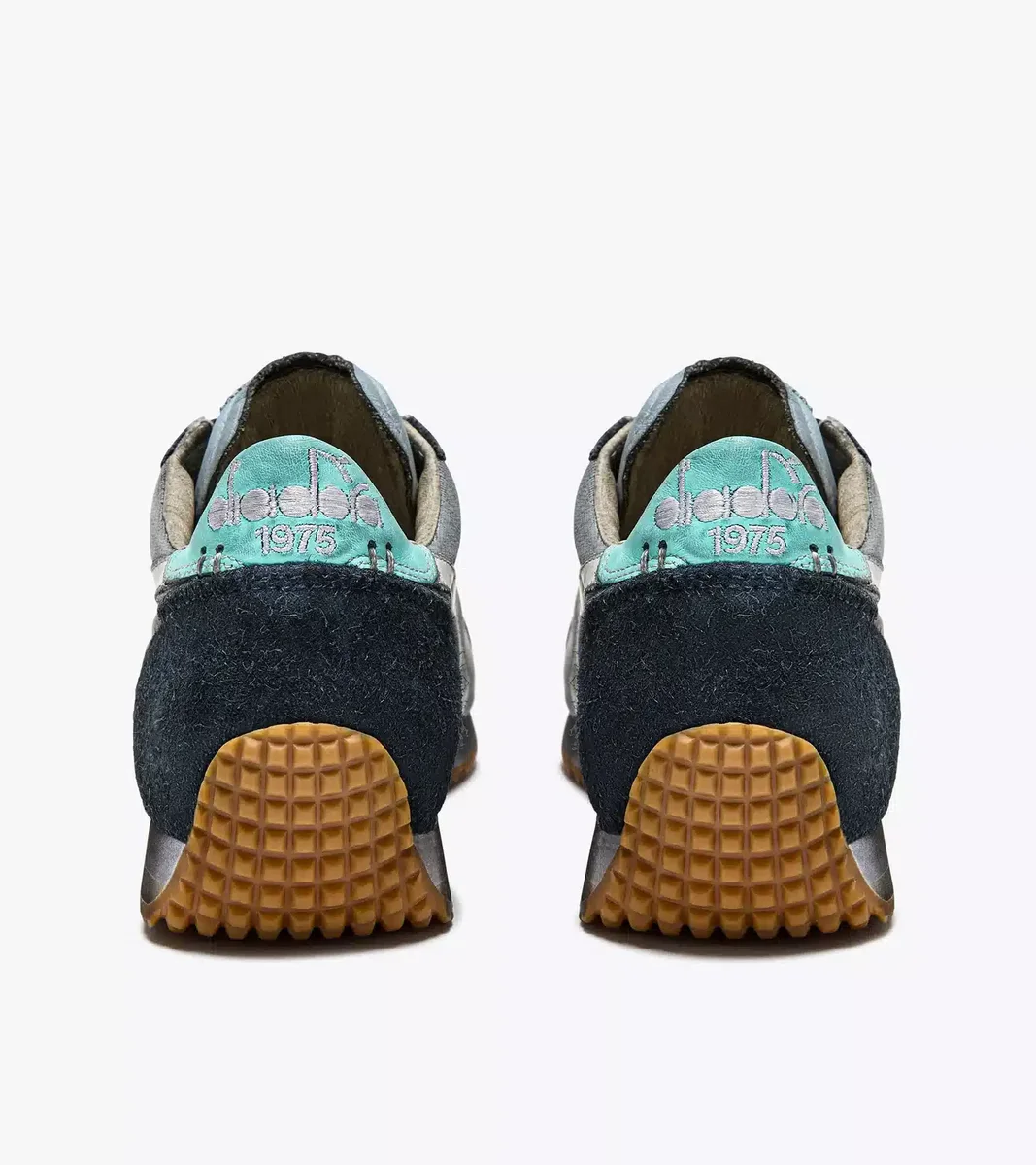 Cette basket Heritage se réinvente une fois de plus. La Equipe H Dirty Stone Wash EVO est composée d’un mélange de toile et de daim avec une languette en cuir, et présente une finition stone wash distinctive. Son aspect vieilli ajoute à son charme intemporel, rappelant le charme nostalgique des années 80. Archives 1975 Modèle de course à pied style années 70, tout droit sorti des archives Diadora 1975. Les détails emblématiques, tels que les œillets métalliques, sont fidèles à la toute première chaussure de sport Diadora. Matériaux de qualité supérieure. Fabriquée en toile et en daim, avec une languette en cuir. Stone wash. Détail typique des sneakers Diadora Heritage, le traitement stonewash adoucit le cuir. Effet sale.
