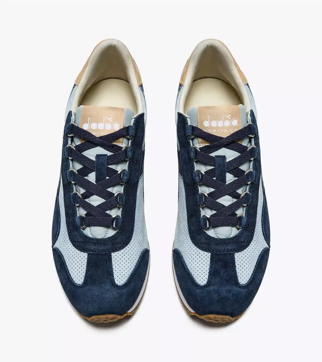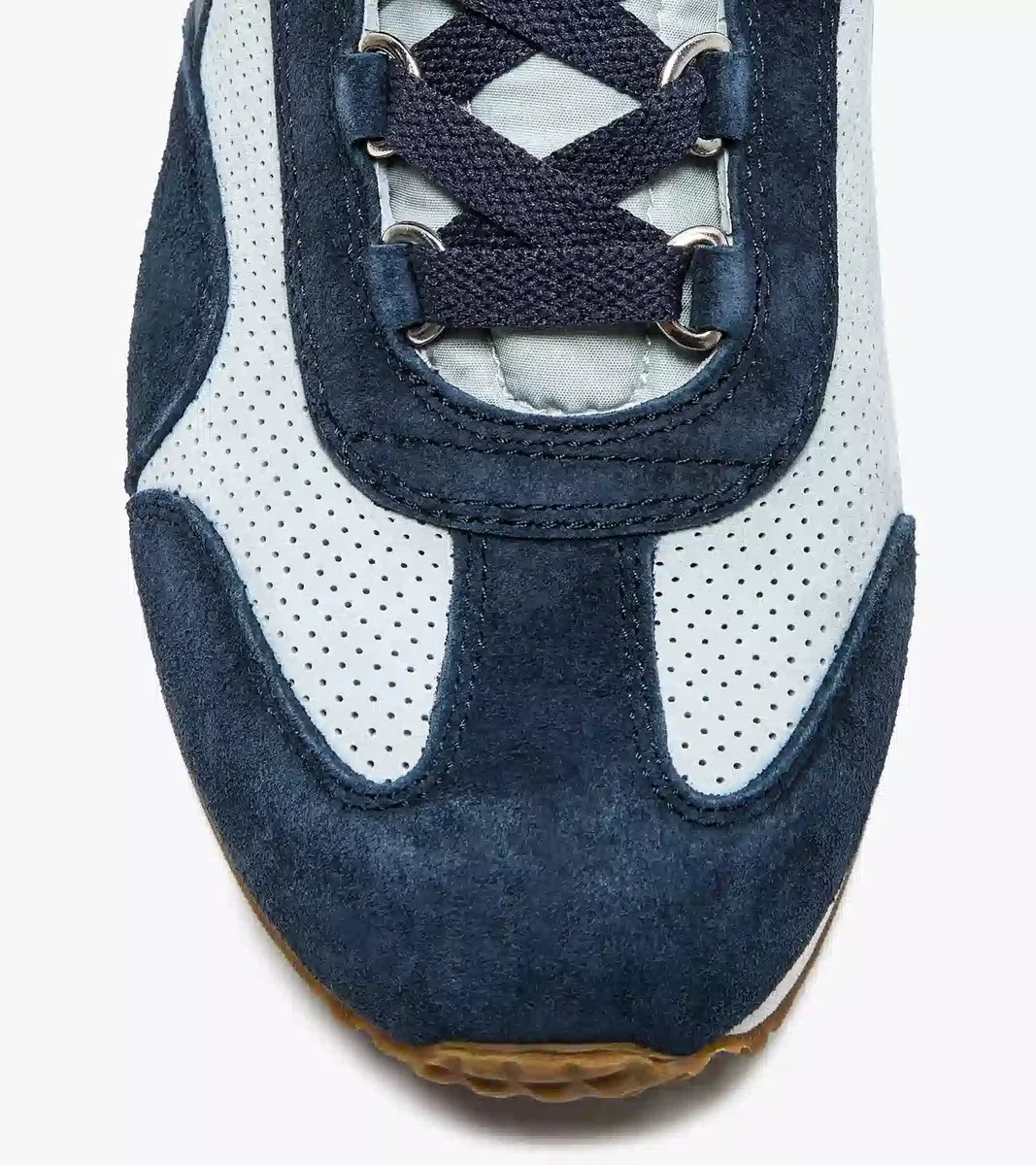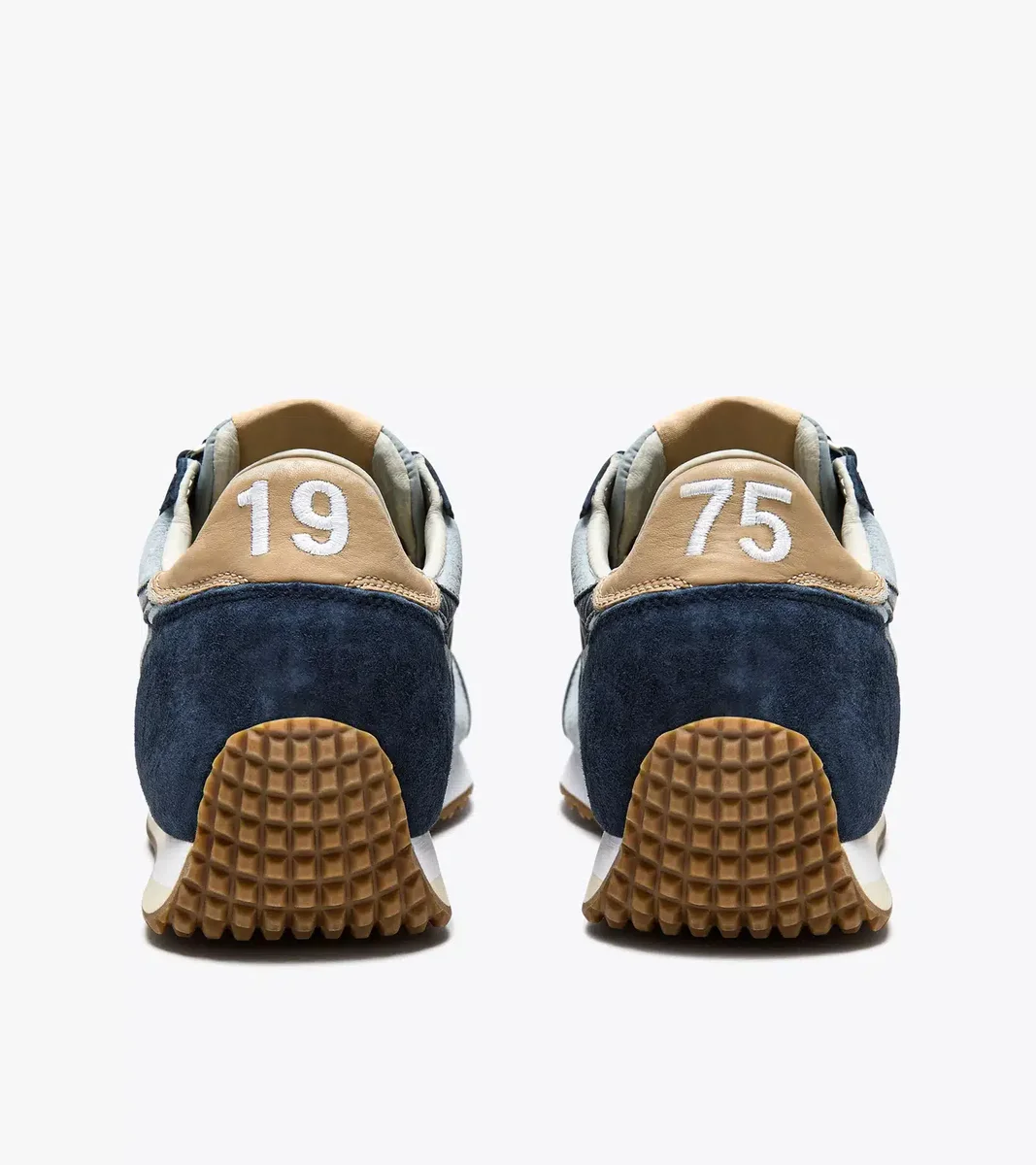 Modèle de course à pied style années 70, tout droit sorti des archives Diadora 1975. Les détails emblématiques, tels que les œillets métalliques, sont fidèles à la toute première chaussure de sport Diadora.