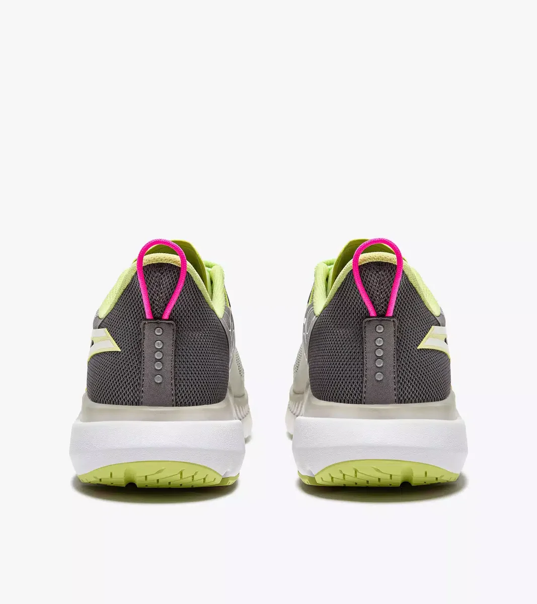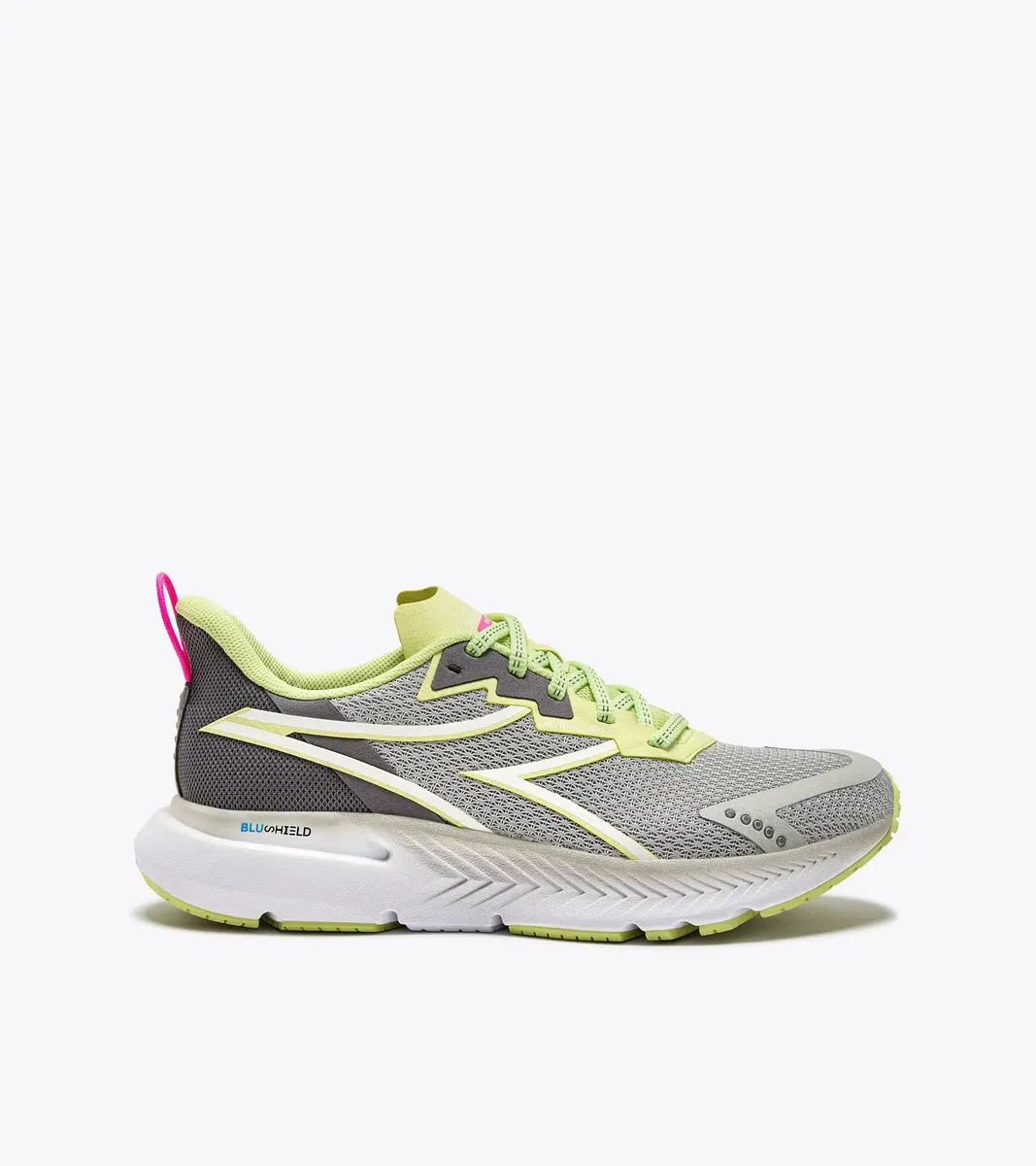 Stable, légère et protectrice, la Volo combine deux technologies Diadora : Anima, qui garantit une chaussure légère et réactive, et Blushield, qui corrige l’asymétrie du pied pour améliorer l’efficacité de la foulée. Elle présente en outre un drop standard de 9 mm pour les chaussures pour femmes.