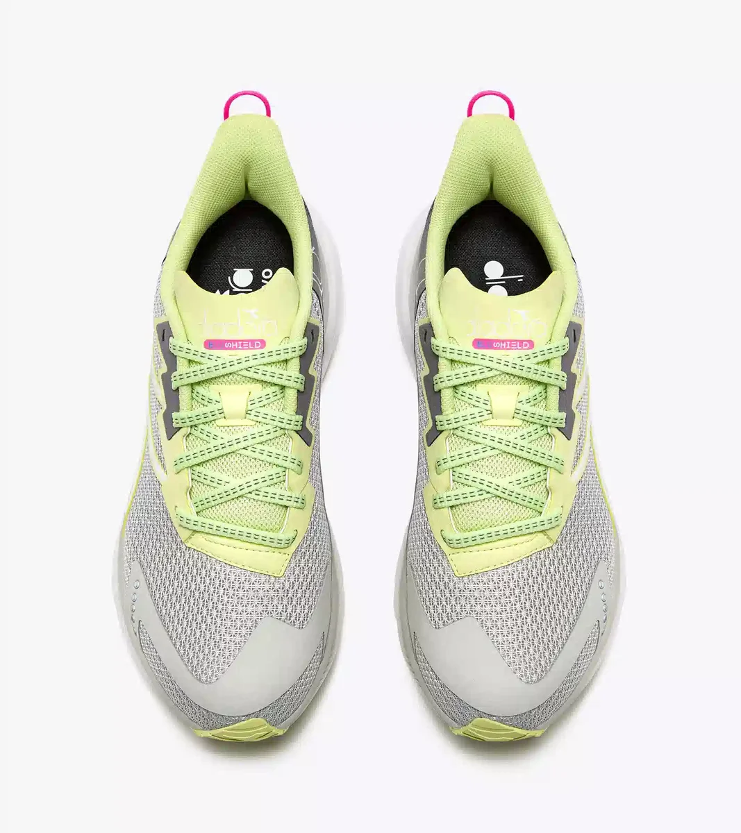 Une puissance d’amorti, de réactivité et de légèreté. Anima est la technologie Diadora conçue pour augmenter la réactivité de la semelle intermédiaire de 30 % tout en réduisant son poids de 20 %. Technologie Blushield Blushield compense le comportement asymétrique des pieds, transformant une foulée irrégulière en une course équilibrée. Le grand avantage de cette technologie est qu’elle n’agit que là où vous en avez besoin.