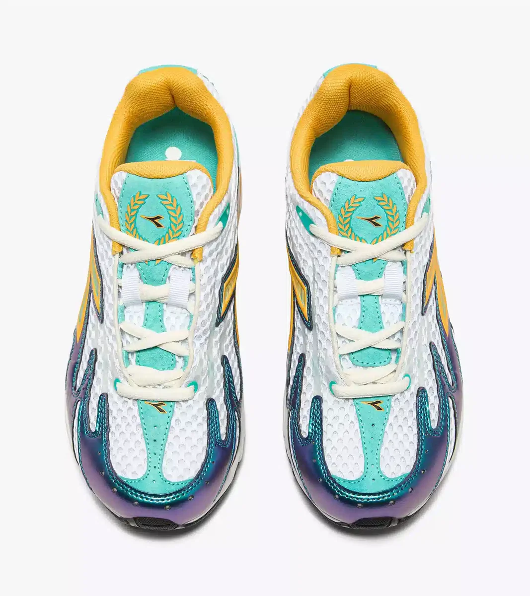 Baskets chunky à l’allure audacieuse, les Mythos Propulsion 280 s’inspirent de l’esthétique des chaussures de course Diadora des années 2000. La nouvelle version Scarab apporte une touche de fraîcheur avec des détails irisés qui ressortent sur le cuir de porc, capturant toute l’essence des baskets Y2K.