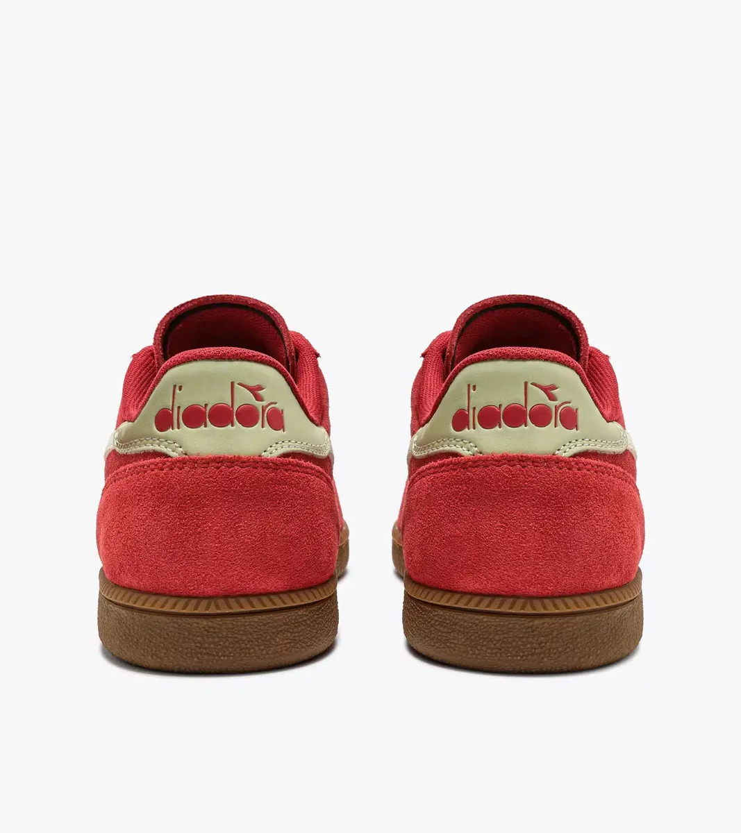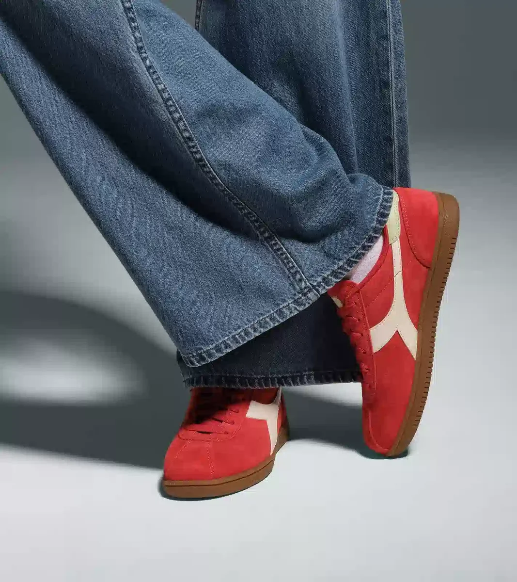 Style terrasse des années 1980. Tout comme sa cousine, la Trainer, la basket Tokyo est issue des archives Diadora des années 80 avec sa semelle épaisse en caoutchouc emblématique, initialement conçue pour les chaussures de handball de l’époque.