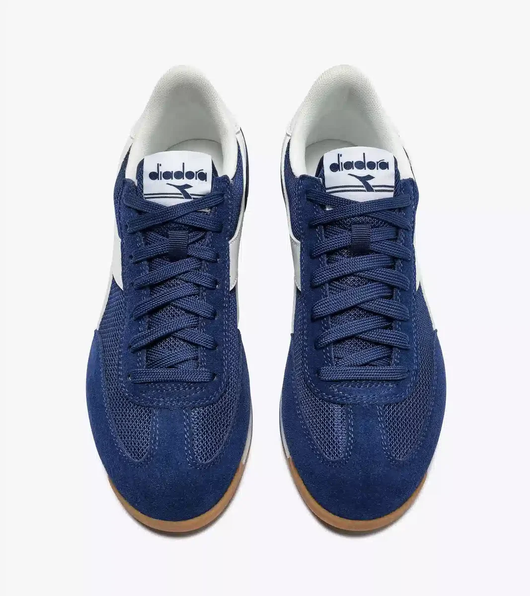 Cross comble le fossé entre les époques, en associant des chaussures classiques à profil bas performantes à la culture moderne des baskets. De la semelle élégante à la pointe en T, sa construction en daim et en tissu dégage une ambiance rétro tout en restant fermement ancrée dans l’univers actuel des baskets. Un clin d’œil au passé, avec un pied fermement ancré dans le présent.