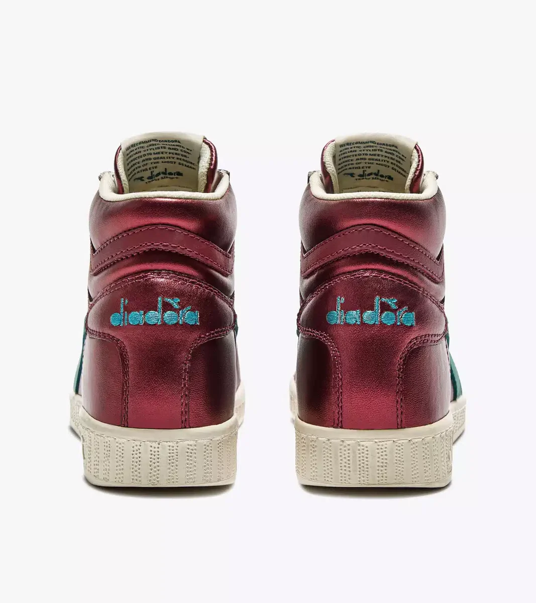 Entrez dans la perfection rétro. La Game L High Metallic WN canalise l’esprit sportif des années 80, en s’inspirant des archives tennis de Diadora. Entièrement confectionnée en cuir métallisé de première qualité.