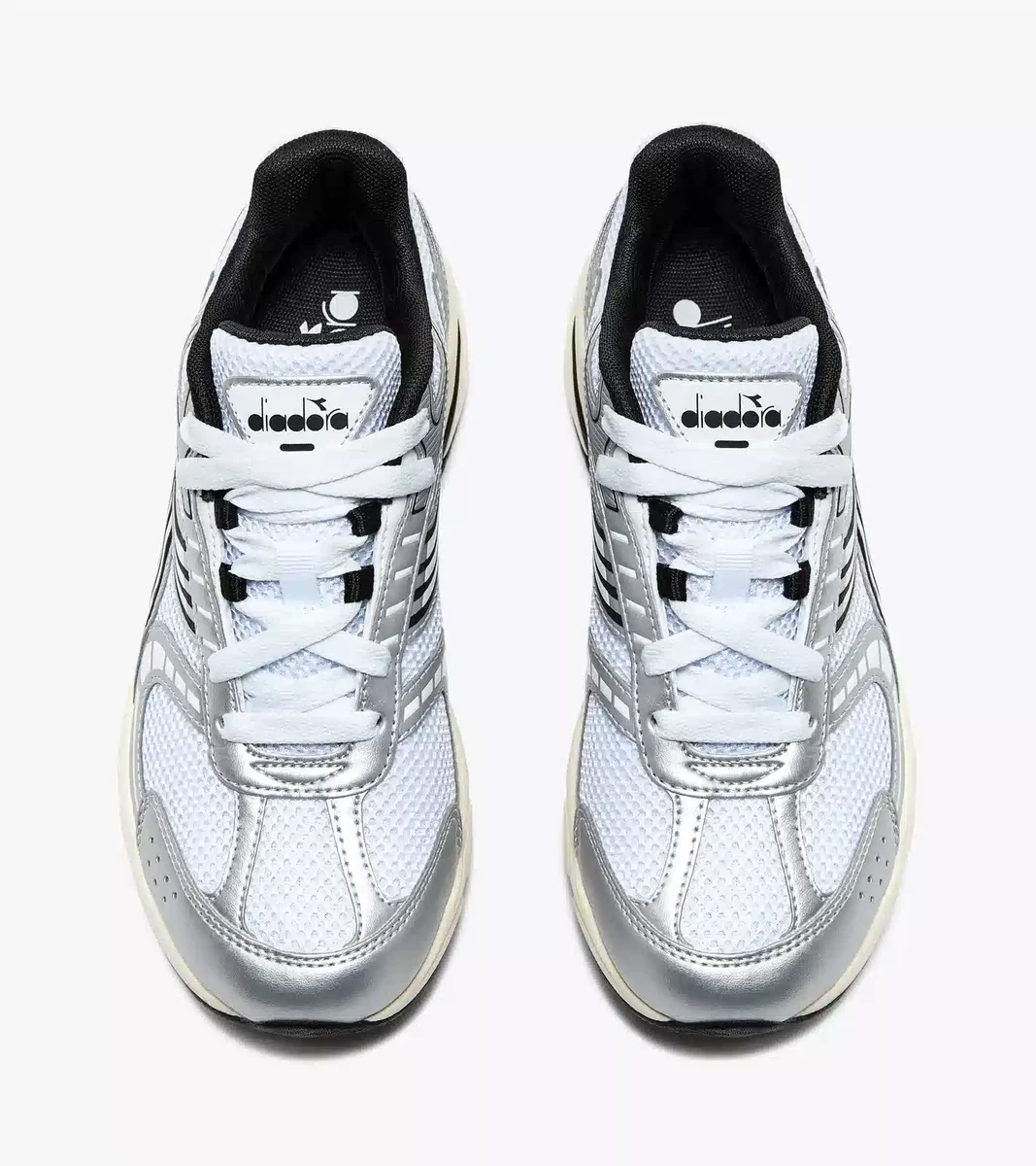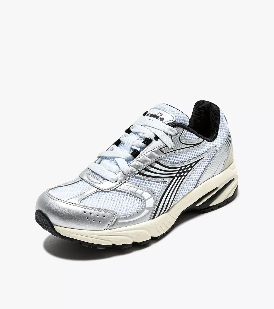 Tous les éléments du style de course à pied des années 2000 : tige en mesh ouvert, design de la semelle intermédiaire et détails argentés