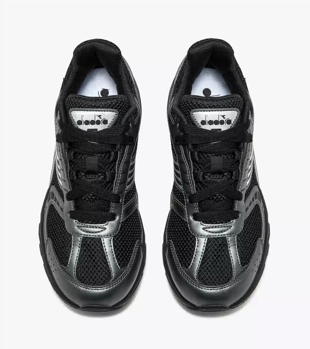 Tous les éléments du style de course à pied des années 2000 : tige en mesh ouvert, design de la semelle intermédiaire et détails argentés