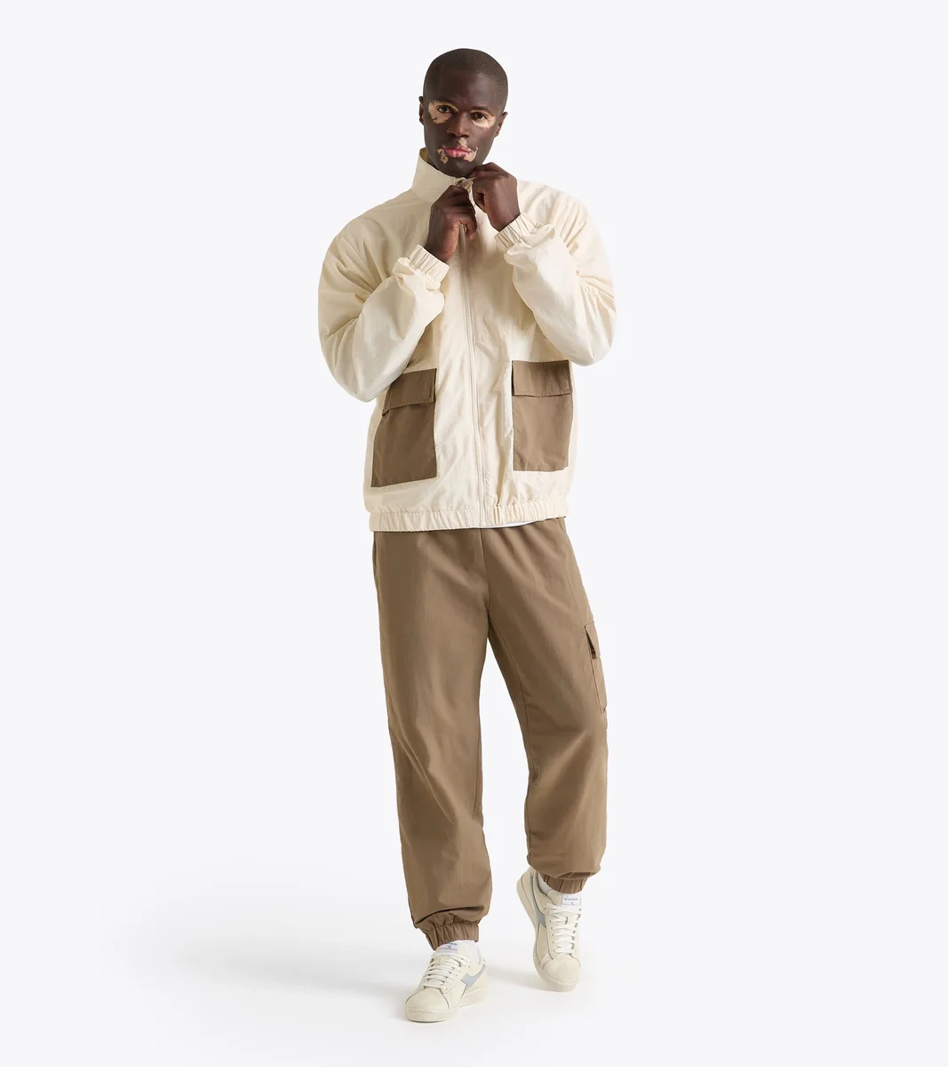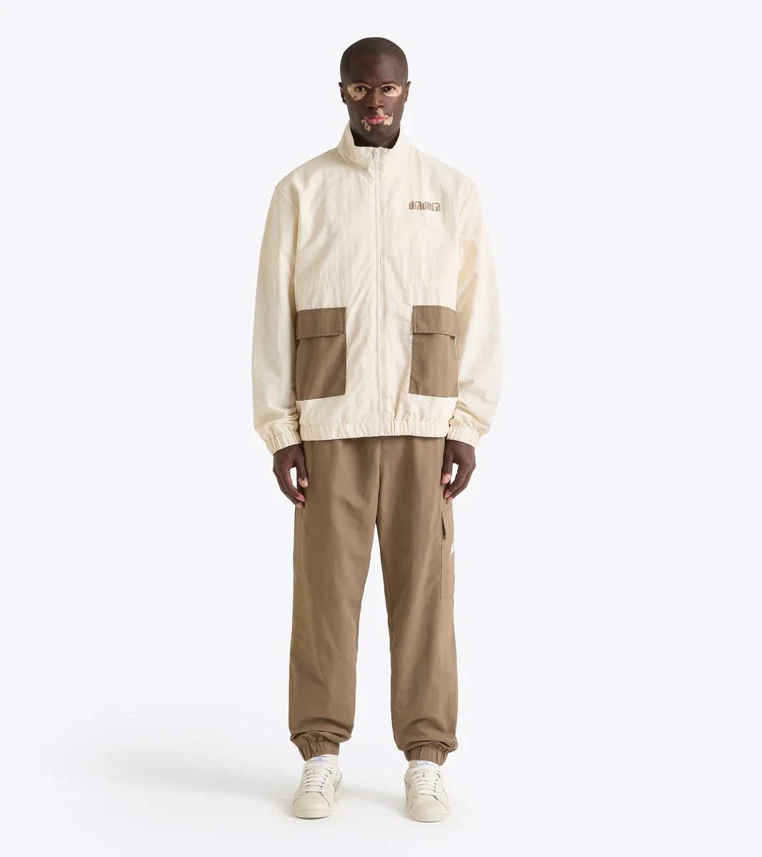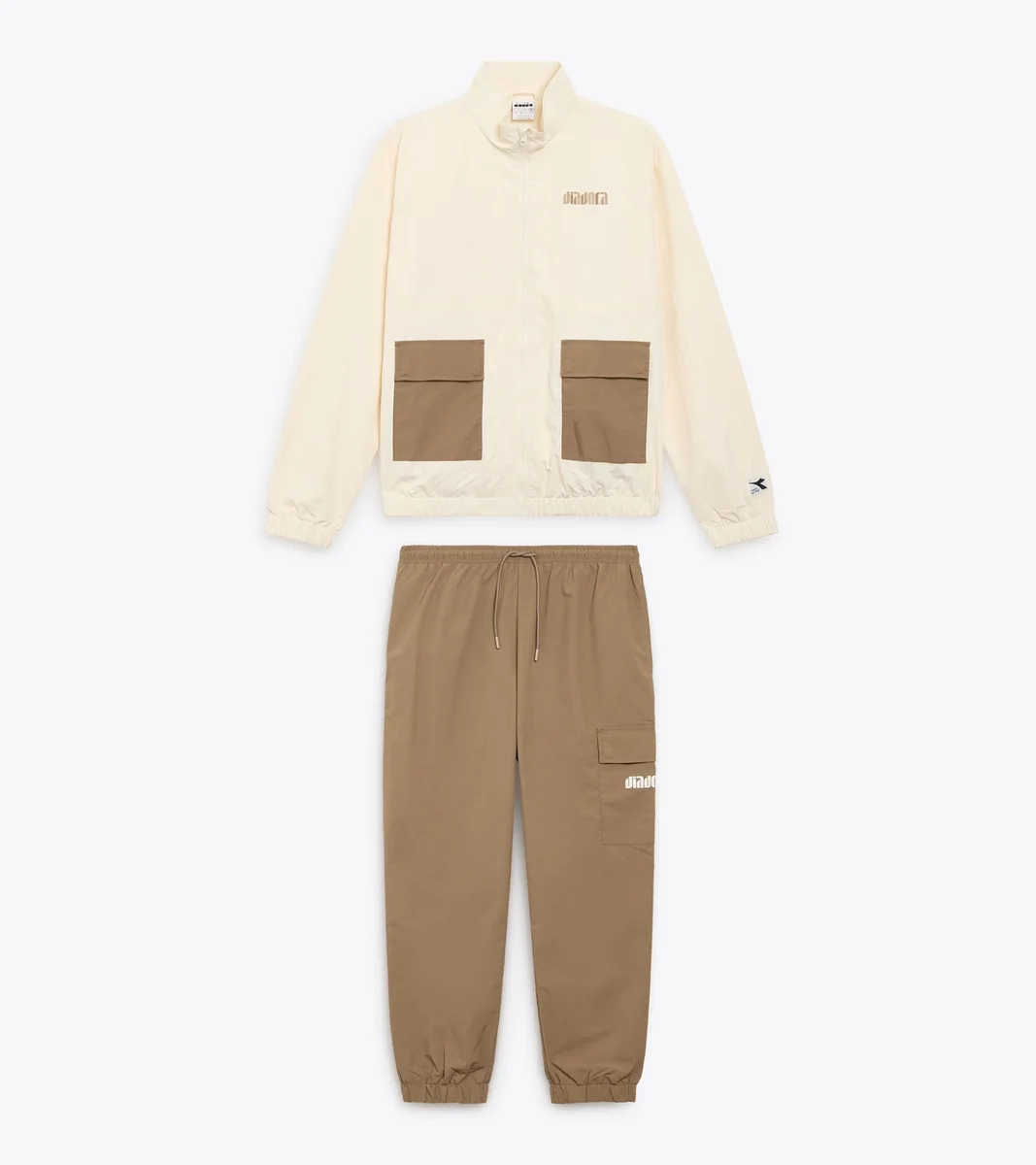 Confectionné en taslan mat, il est conçu pour le mouvement, que ce soit sur la piste ou au quotidien. Le sweat à capuche zippé à col montant est doté de poches contrastées, tandis que le pantalon présente une coupe classique. Il est orné d’une étiquette personnalisée.