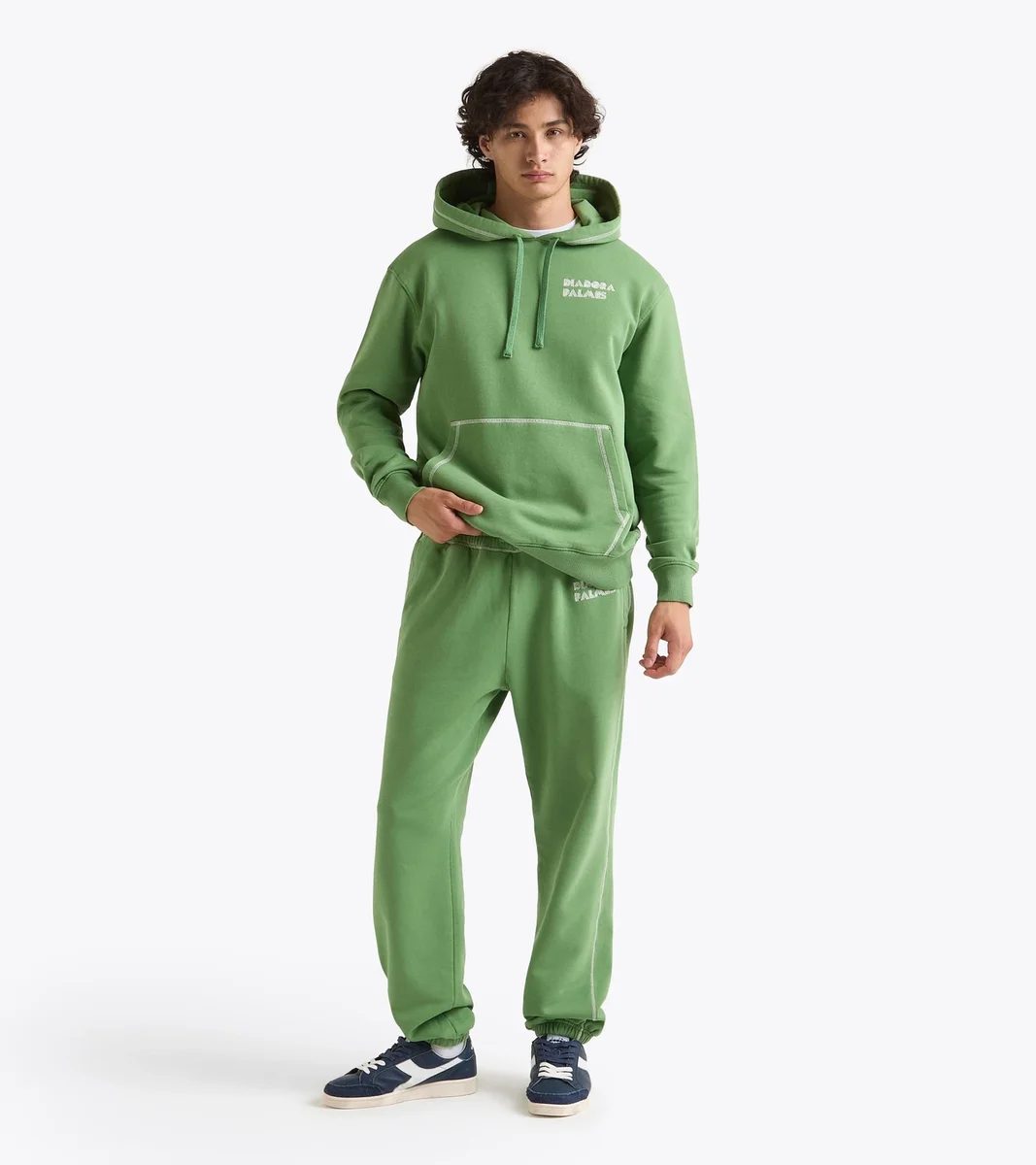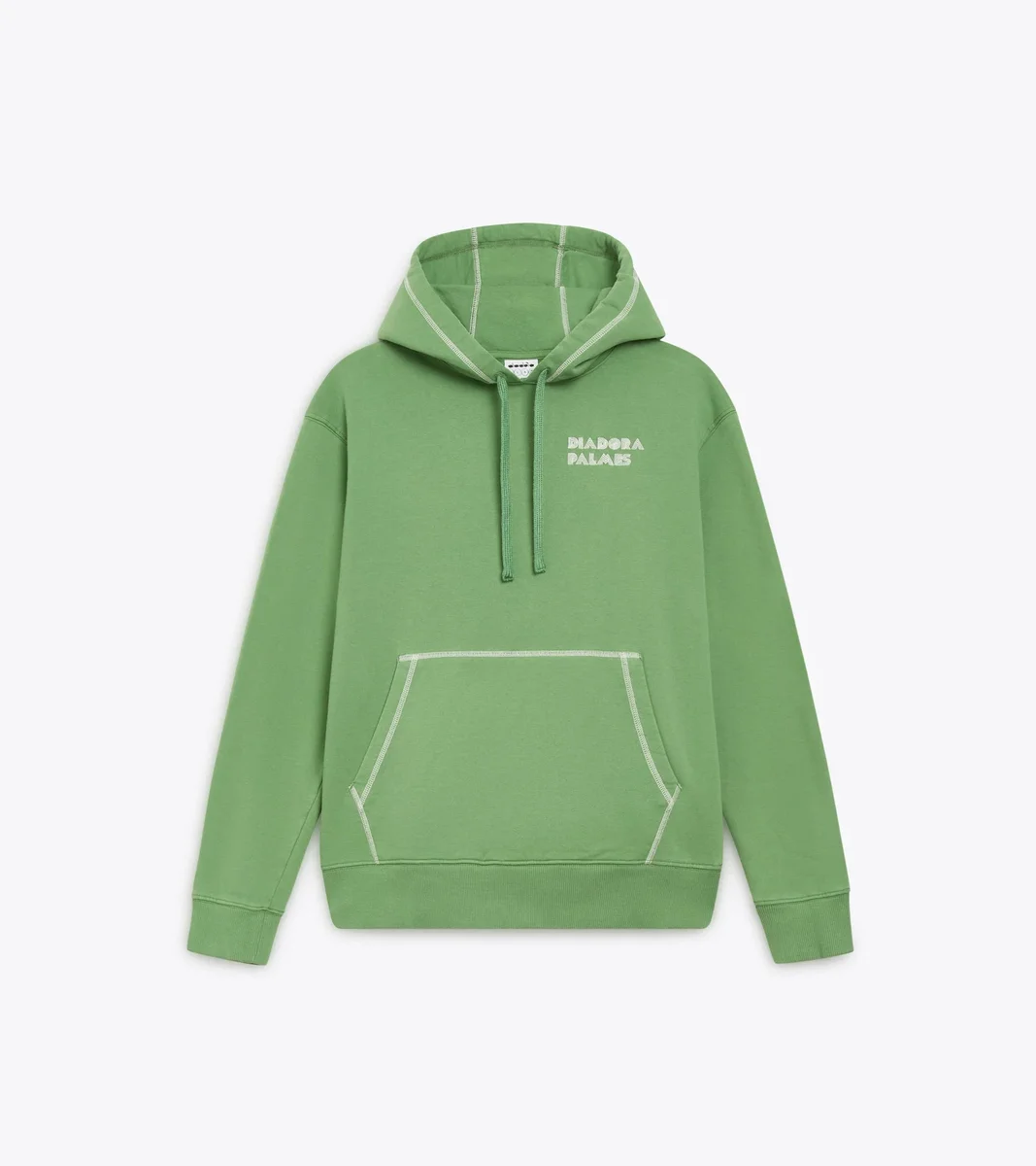 Le sweat à capuche Legacy apporte l’esthétique du court à la rue, et bien au-delà. Confectionné en molleton 100 % coton brossé, il présente une coupe intemporelle et des coutures contrastées, faisant écho à la signature « Palmes Diadora » brodée et au logo dans le dos. La poche kangourou oversize bénéficie du même traitement sur mesure. La finition délavée donne à chaque pièce une patine unique et usée, tandis qu’une étiquette jacquard personnalisée scelle la collaboration. La nouvelle collection Legacy par Nikolaj Hansson, fondateur de Palmes. La collection s’inspire des archives historiques de Diadora, de l’histoire du sport et du design des vêtements Made In Italy. Sweat à capuche en molleton brossé.p>