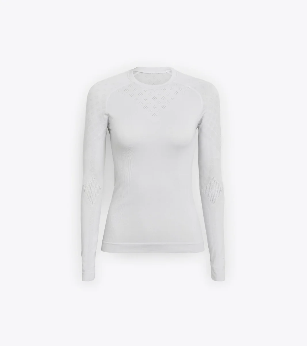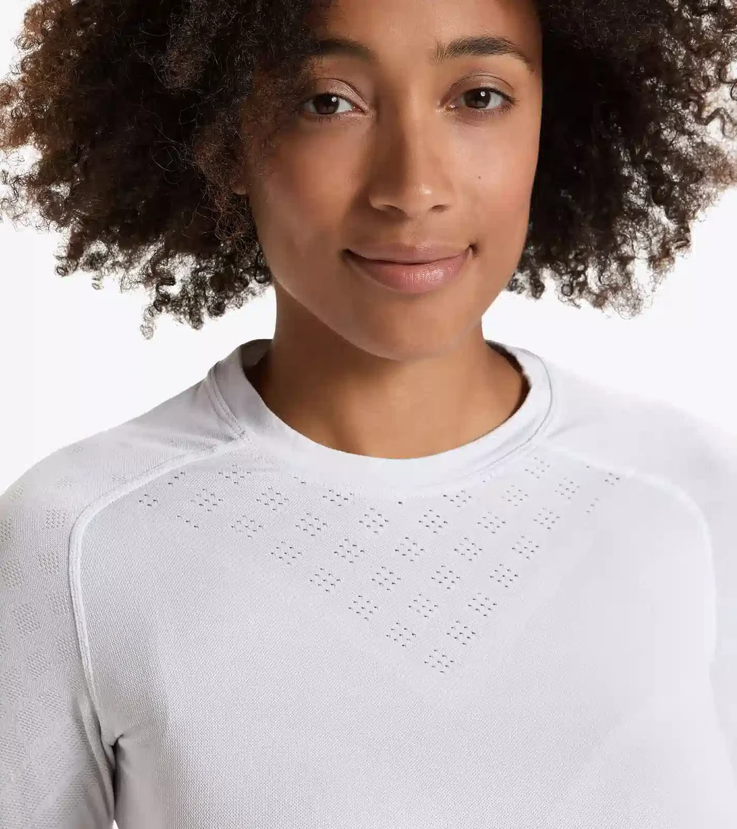 T-shirt à manches longues et col rond, dans un mélange doux et léger de polyamide et de polypropylène. Ce dernier, ton sur ton, a la double fonction de garder le corps au sec et de mettre en valeur les logos. Le slogan motivant « hidden power », ainsi que le double logo placé au centre de l’extrémité de la manche gauche, font de ce vêtement un incontournable pour l’entraînement ou l’exercice physique.