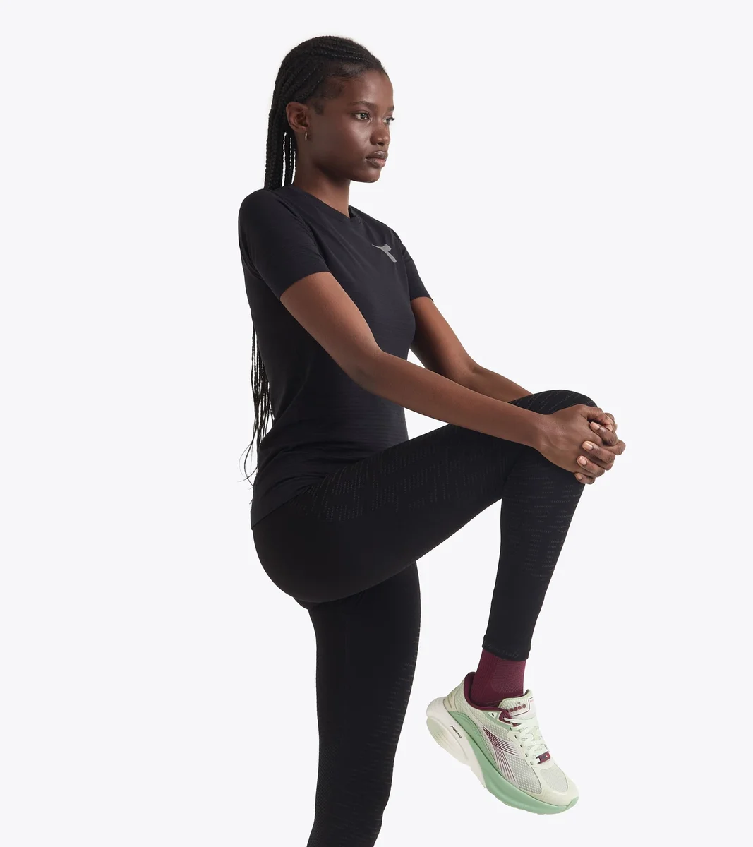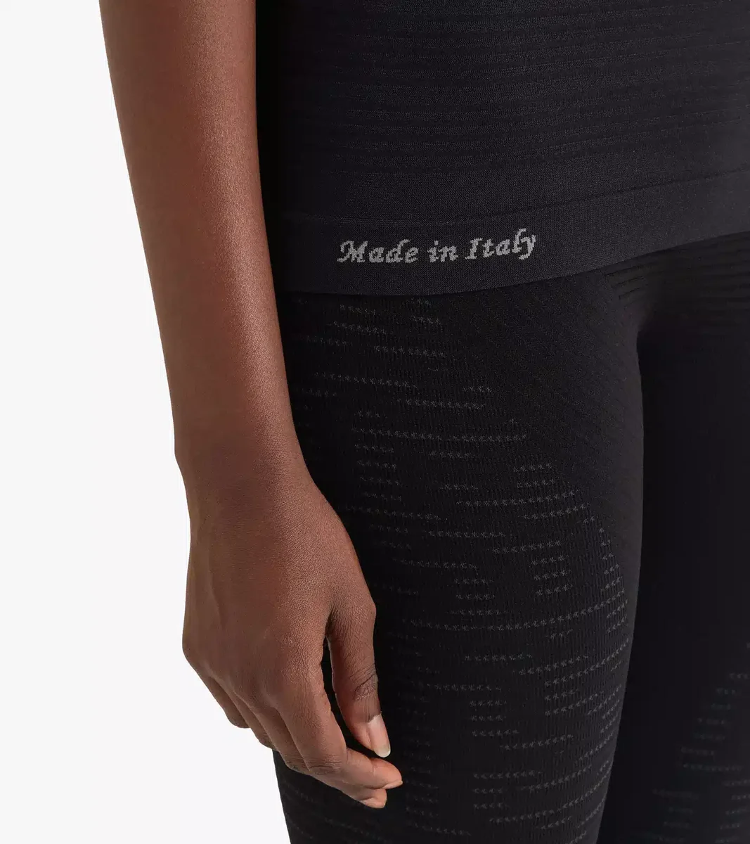 Nous avons conçu un vêtement de course technique ultra-léger et entièrement sans coutures, une seule couche qui fait tout. Fabriqué en Italie, avec une innovation que vous ressentirez directement sur votre peau.
