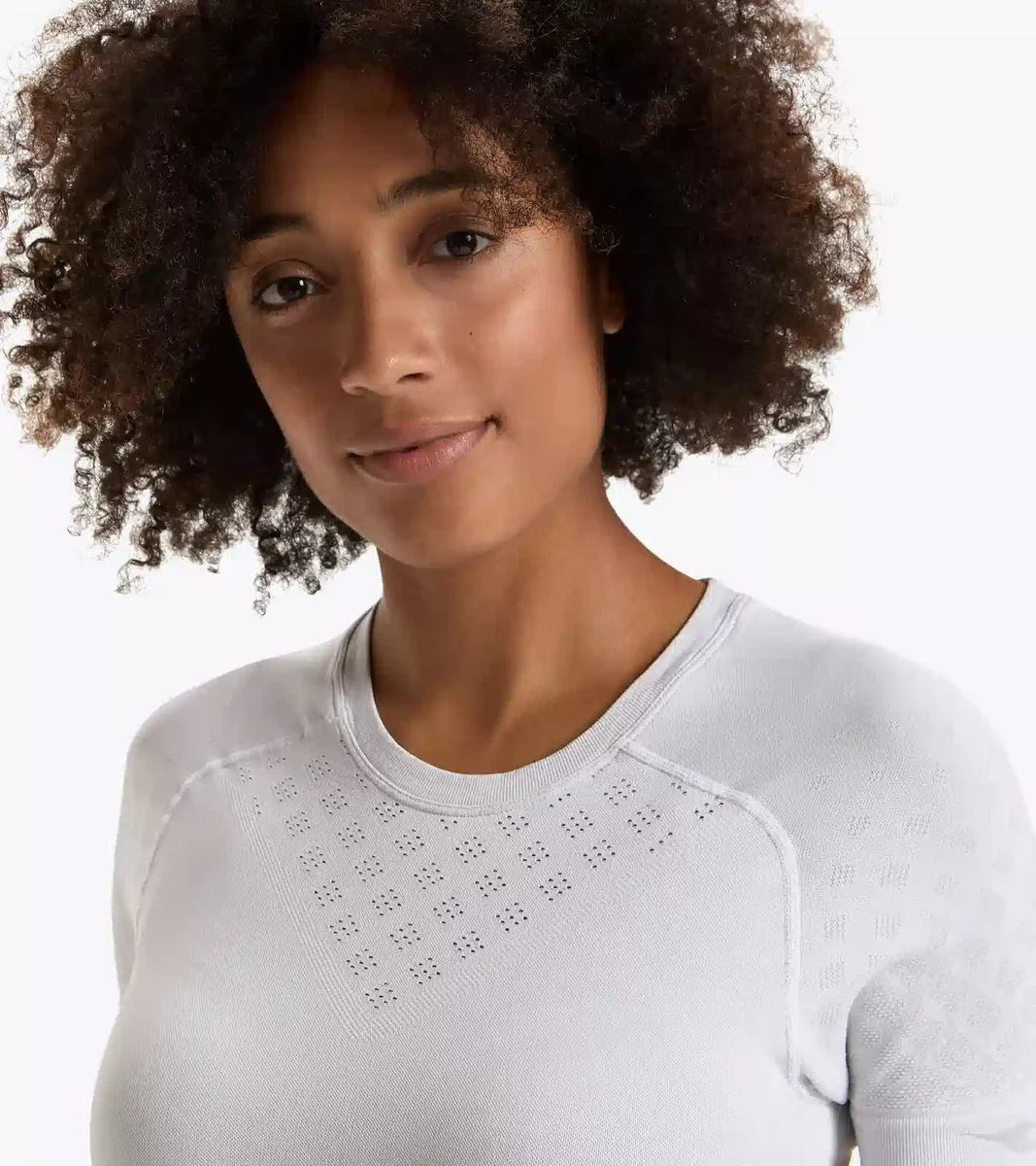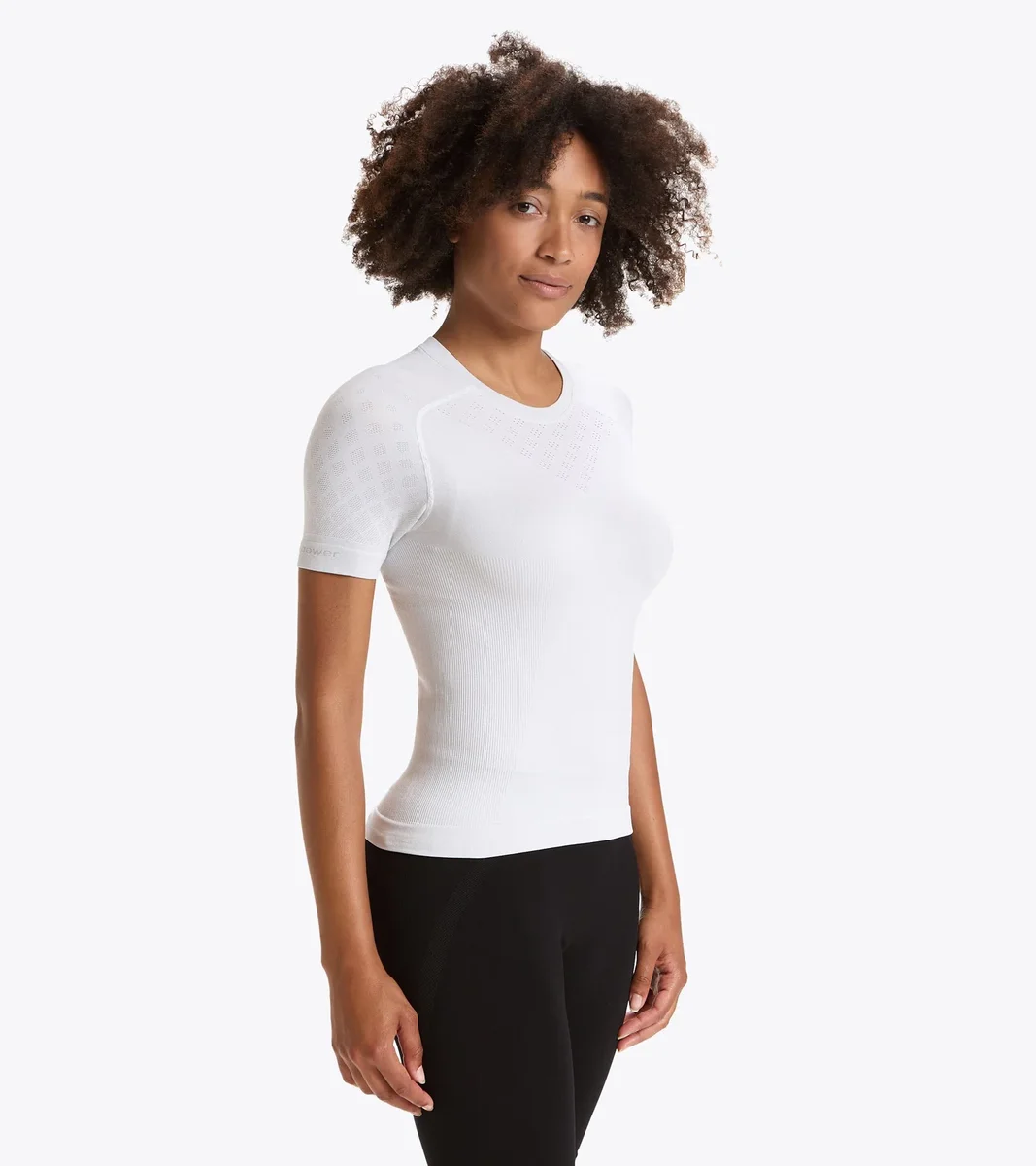 T-shirt à manches courtes et col rond, confectionné dans un mélange doux et léger de polyamide et de polypropylène. Ce dernier, ton sur ton, a la double fonction de garder le corps au sec et de mettre en valeur les logos.