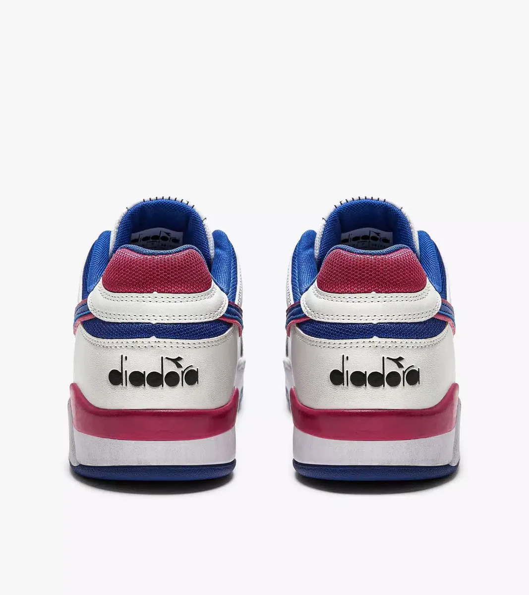 La tige en cuir blanc est cirée pour lui donner un effet usé unique, tandis que le logo contrasté et la languette arrière ajoutent une touche élégante. Les détails colorés sur la pointe accentuent son inspiration sportive. Découvrez la basket qui incarne l’héritage du tennis Diadora des années 90.