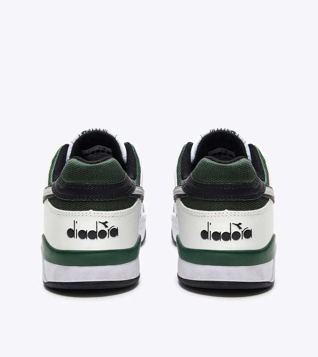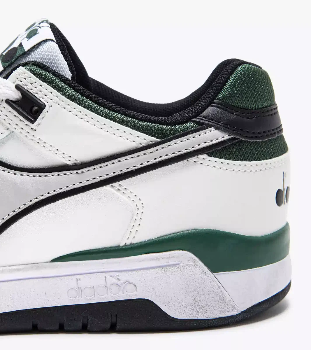 La tige en cuir blanc est cirée pour lui donner un effet usé unique, tandis que le logo contrasté et la languette arrière ajoutent une touche élégante. Les détails colorés sur la pointe accentuent son inspiration sportive. Découvrez la basket qui incarne l’héritage du tennis Diadora des années 90.