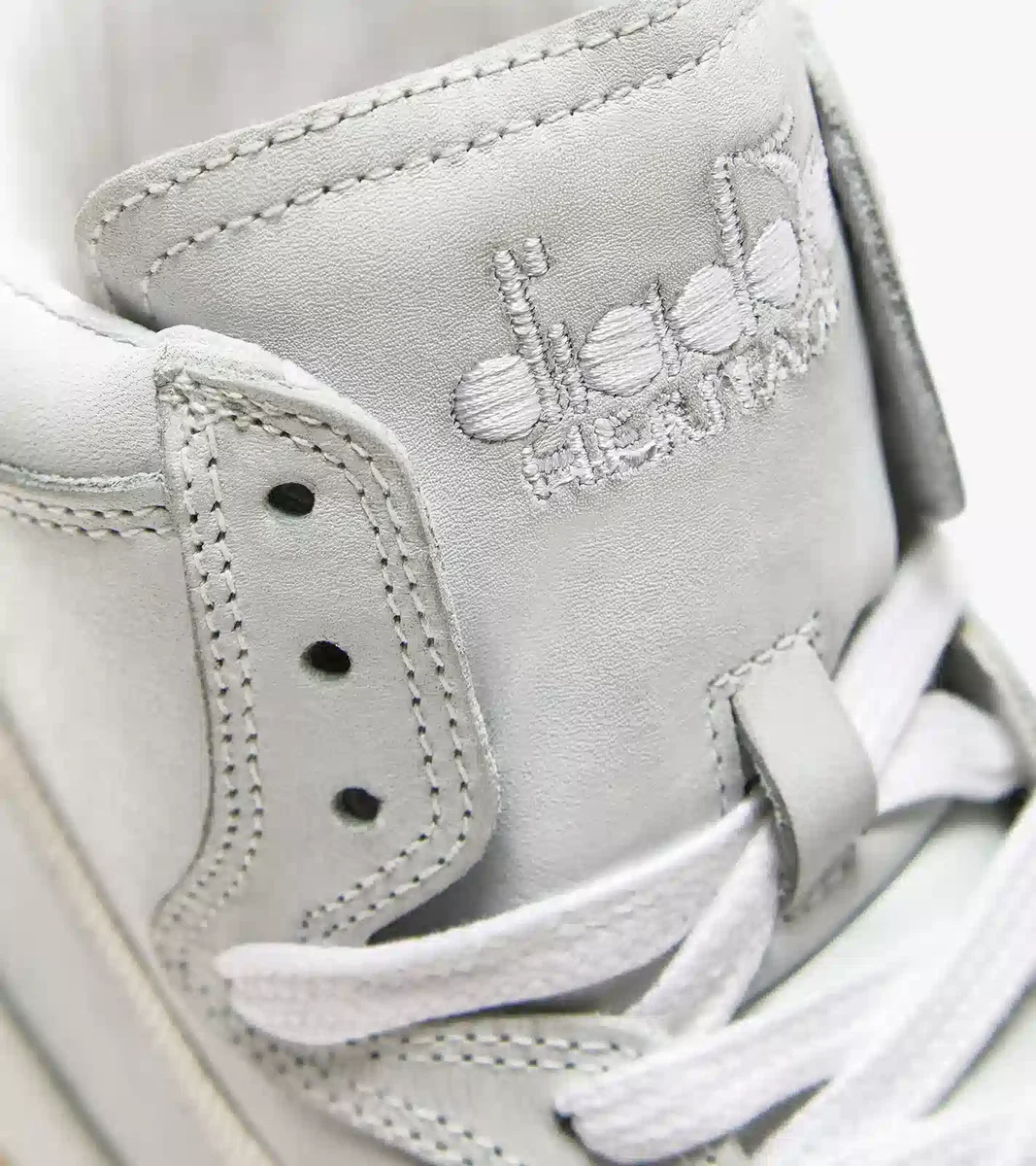 Détail typique des baskets Diadora Heritage, le traitement stone wash adoucit le cuir