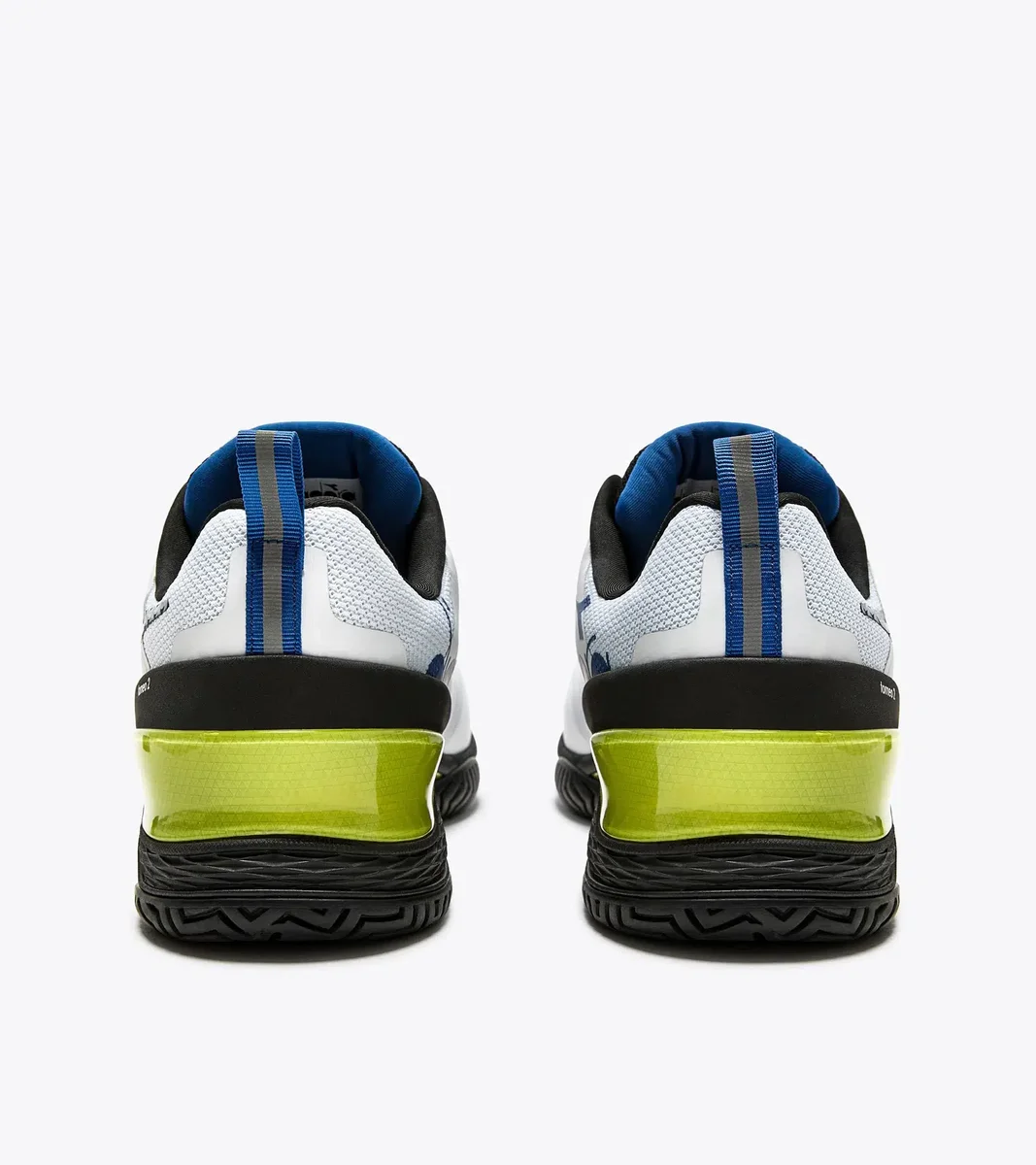 La Blushield Torneo 2 AG est une chaussure de tennis pour homme conçue pour les joueurs de tous niveaux, pour une utilisation sur surface dure ou terre battue. Tige en SuprellTech, mesh aéré et d-skin, pour une excellente stabilité, respirabilité et confort, doublure en lycra doux avec design antidérapant. Semelle intérieure amovible dnattivo ; semelle intermédiaire en EVA léger et renfort de voûte plantaire pour améliorer la stabilité ; technologie Blushield au niveau du métatarse. Semelle extérieure en caoutchouc avec composé Duratech 5000 spécial résistant à l’usure. Utilisation :