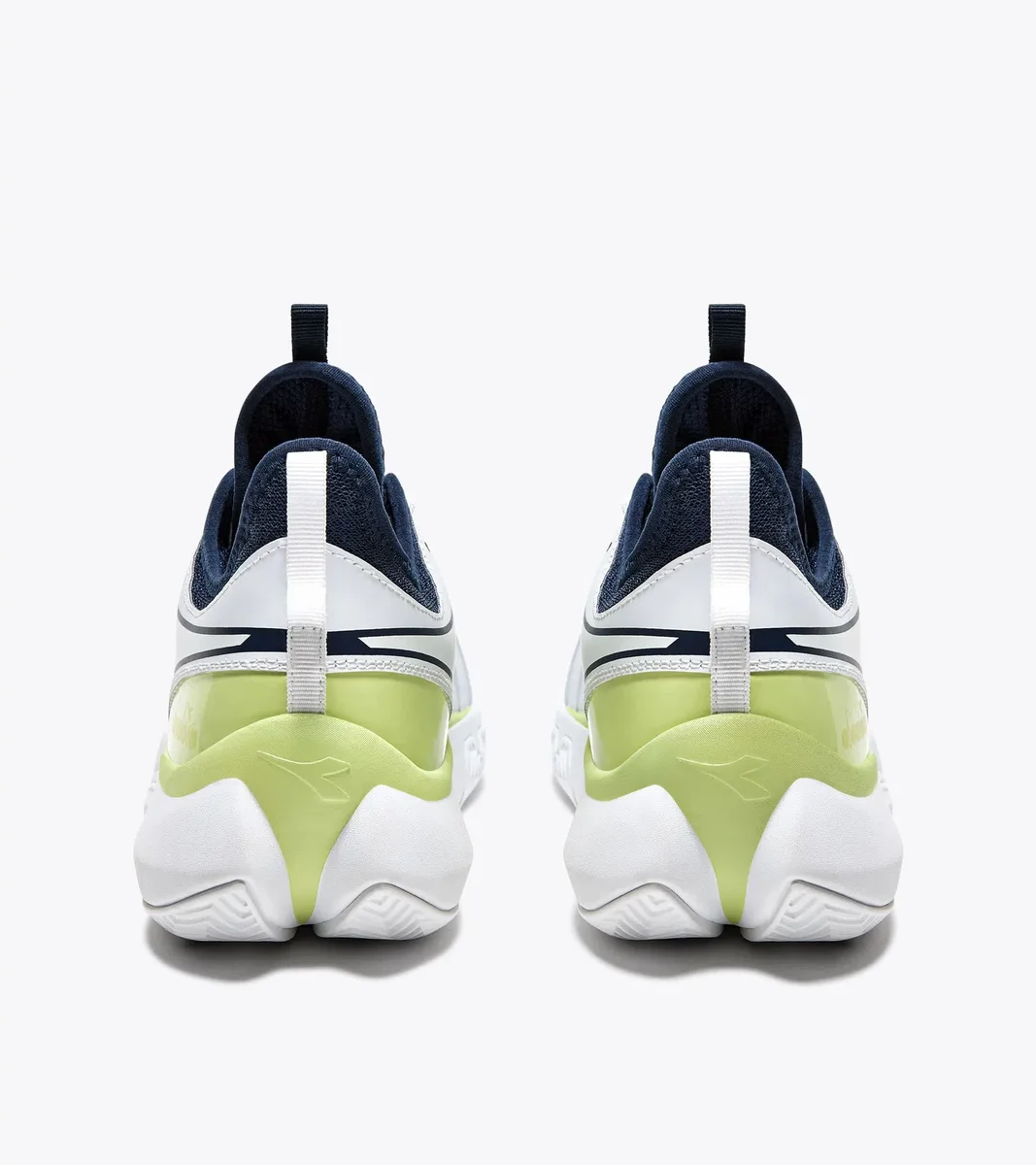 La semelle intermédiaire à construction ailée et la tige robuste offrent légèreté et agilité, pour vous permettre de réaliser vos meilleurs coups