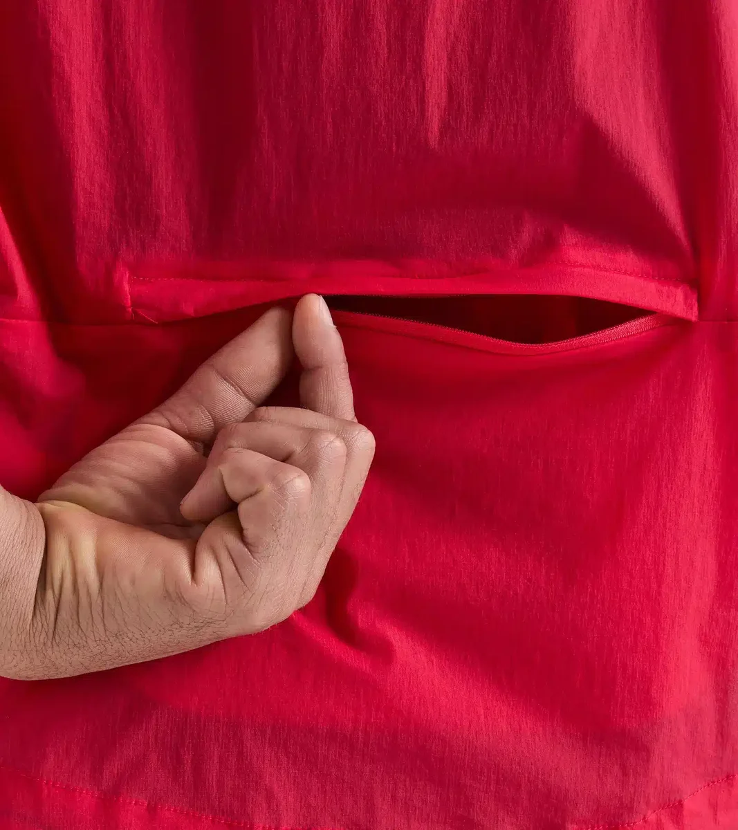 Si vous n’avez plus besoin de cette protection pendant votre course, rangez le gilet dans la poche arrière zippée et continuez à courir sans distraction.