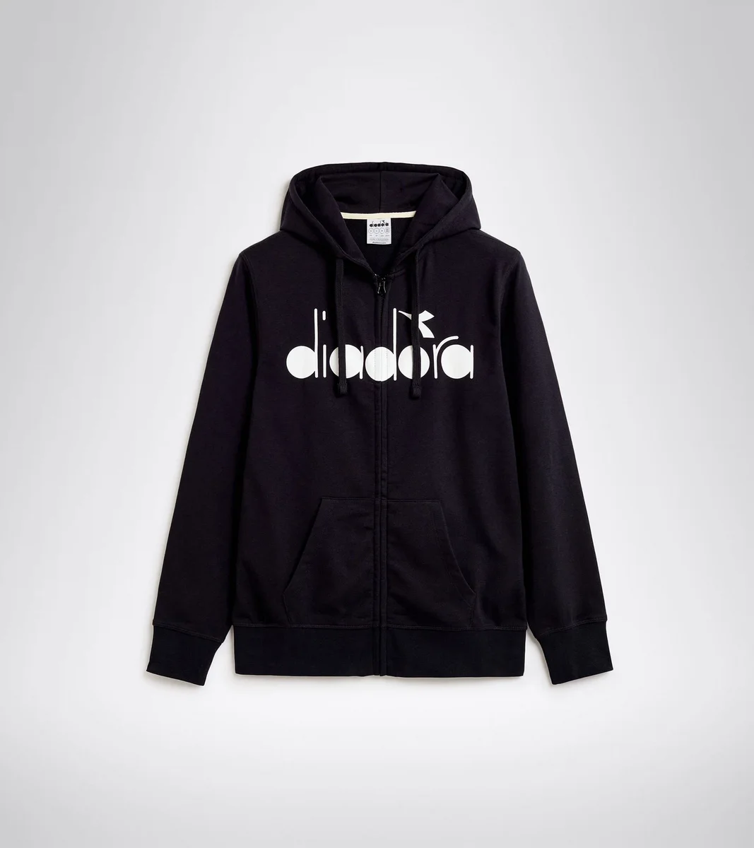 Sweat à capuche zippé avec poche kangourou, en coton et polyester. Logo Diadora sur le devant, coupe classique.