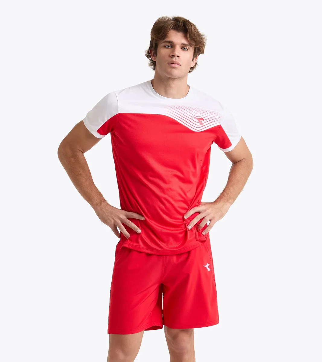 T-shirt en polyester léger avec un tissage extrêmement respirant et des fentes latérales pratiques. Le vêtement idéal pour les séances d’entraînement les plus longues et les plus intenses.