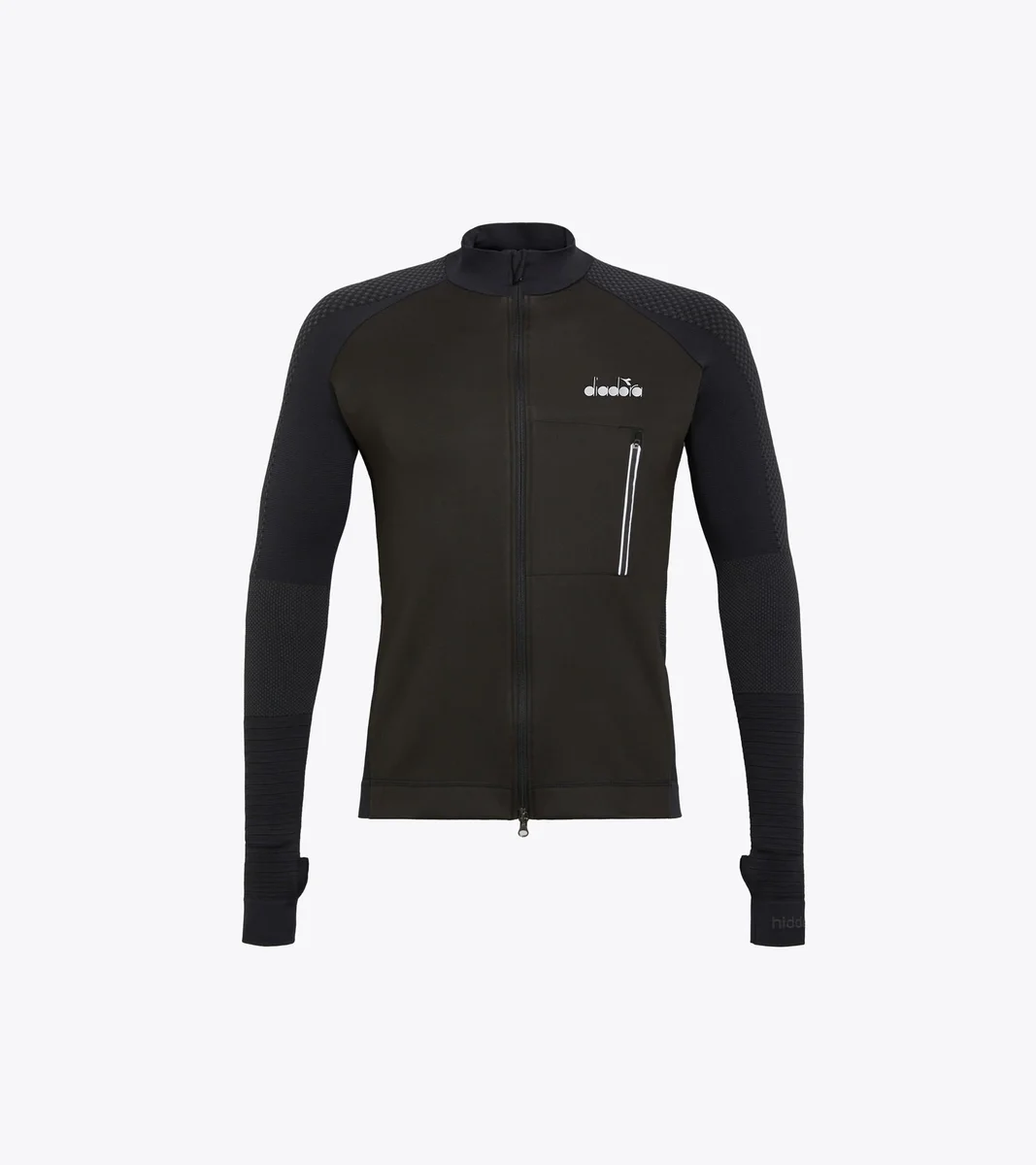 La Hidden Power Jacket est une veste de course à fermeture éclair intégrale pour homme, fabriquée en Italie, en polypropylène et polyamide chauds. Panneaux avant en tissu 2 couches doux, coupe-vent et imperméable, qui est également respirant. Poche poitrine zippée et passe-pouces.
