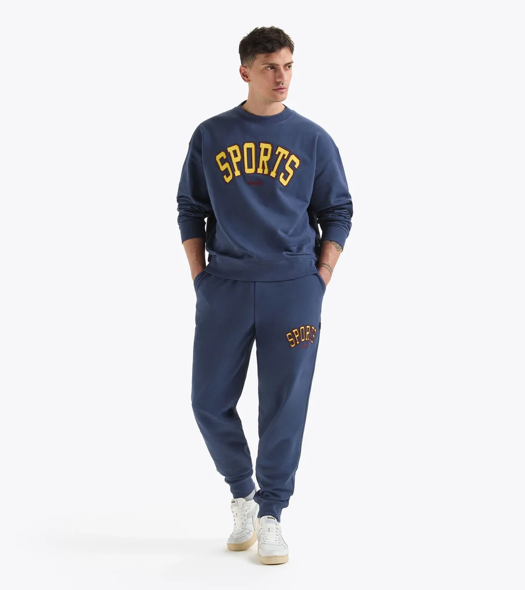 Ce pantalon de jogging est fabriqué à partir de tissu 100 % coton recyclé non brossé certifié RCS (Recycled Claim Standard). Il offre une coupe confortable avec une taille élastique ajustable et des poignets au bas. Il est doté de deux poches avant et d’une broderie personnalisée sur la cuisse. La ligne Legacy se caractérise par des écussons en coton brodés indiquant l’année de fondation de Diadora, ainsi que par une étiquette jacquard portant la signature du créateur. L’ensemble de la ligne est conçu pour être unisexe.